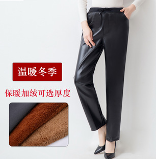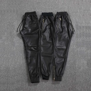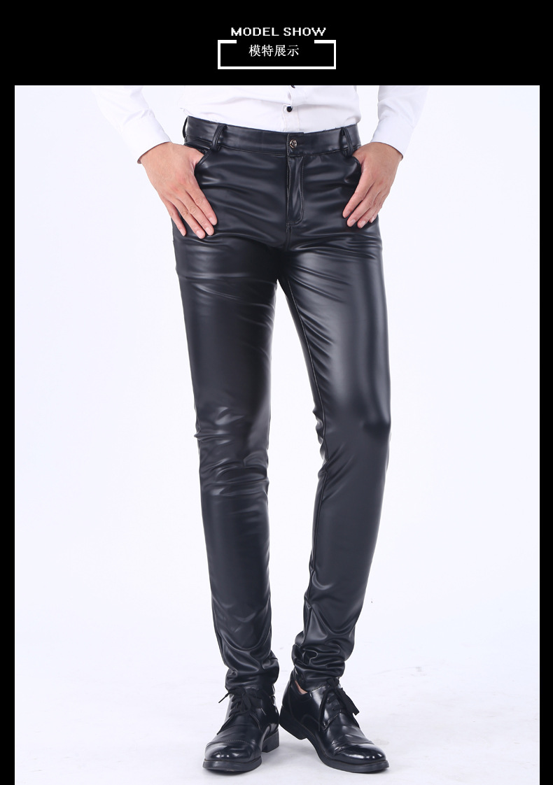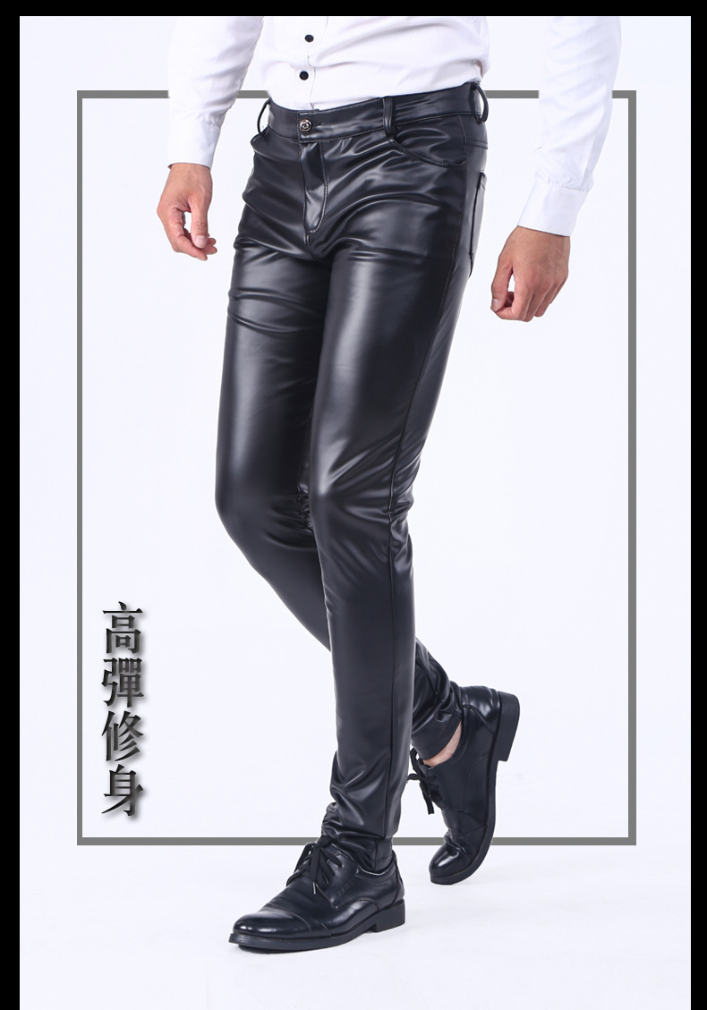 Spring and autumn Korean-style slim-fit leather pants, men's skinny pants, tight stretch trendy motorcycle leather pants, men's fleece long pants