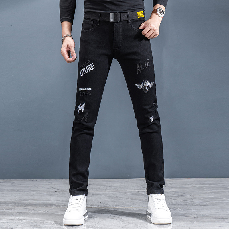 Spring and Autumn men's denim long pants, a trendy and fashionable Korean-style slim stretch casual skinny jeans for men