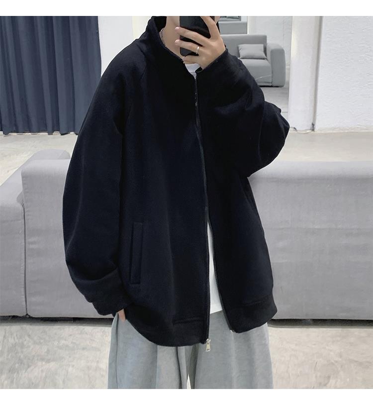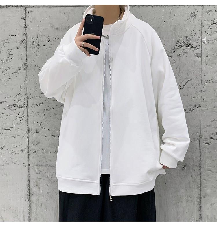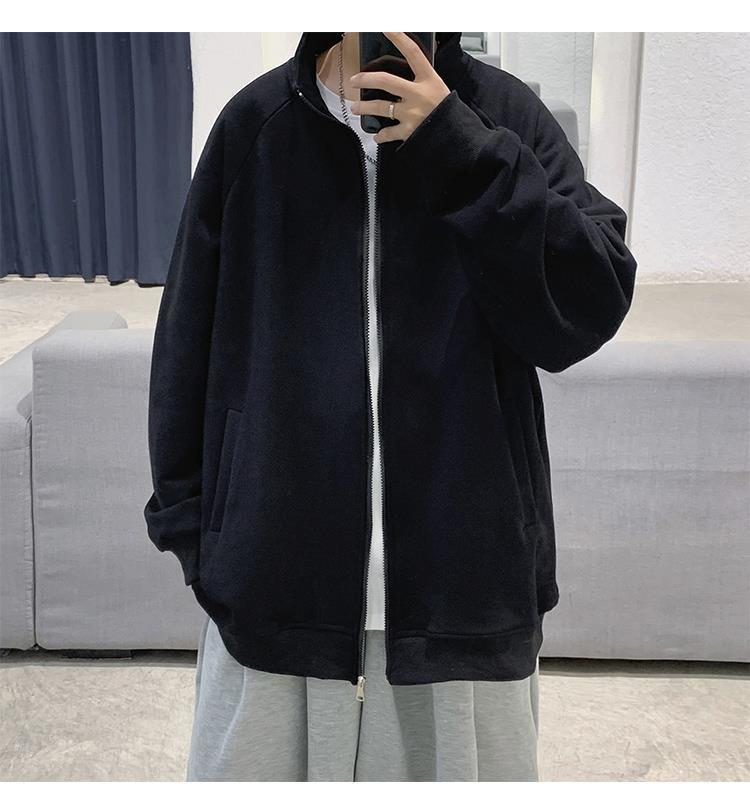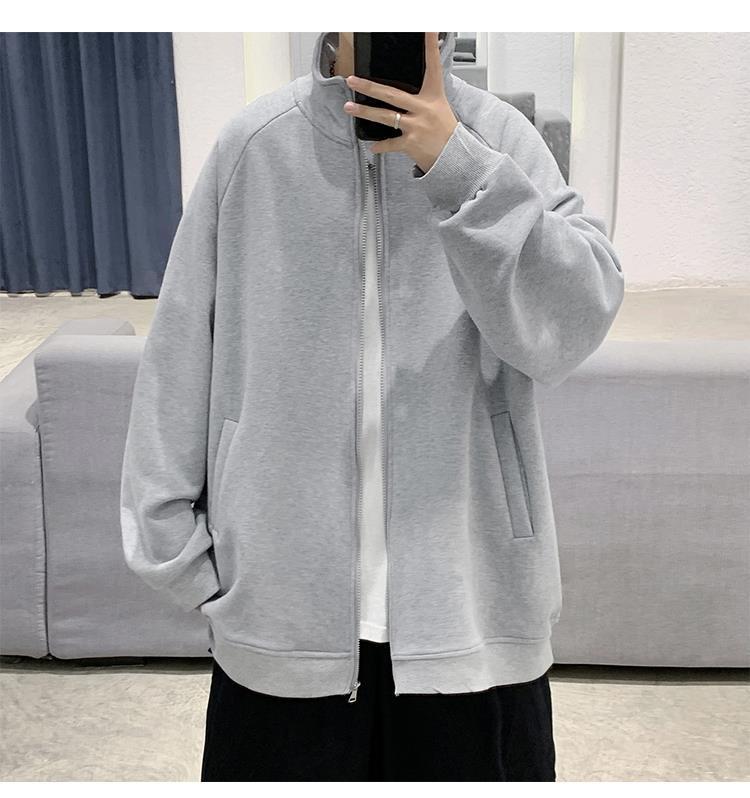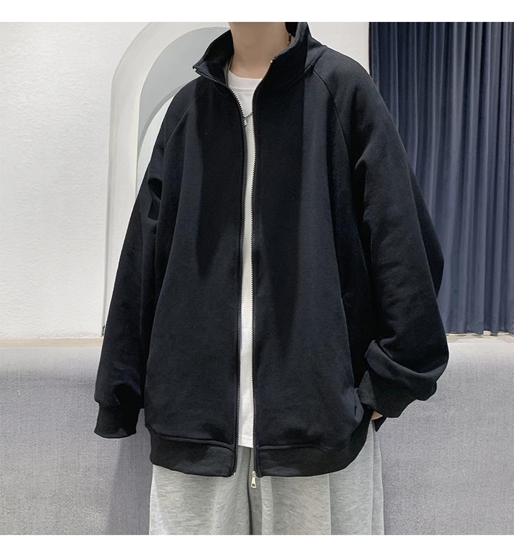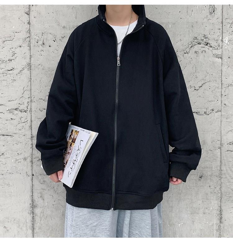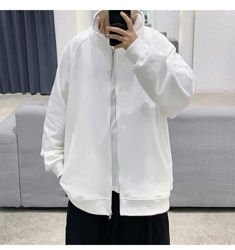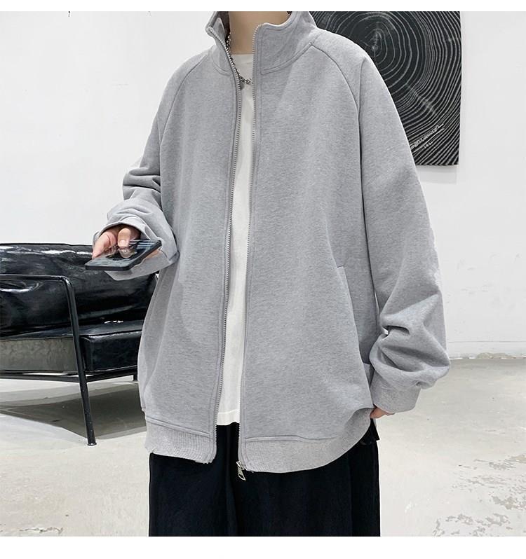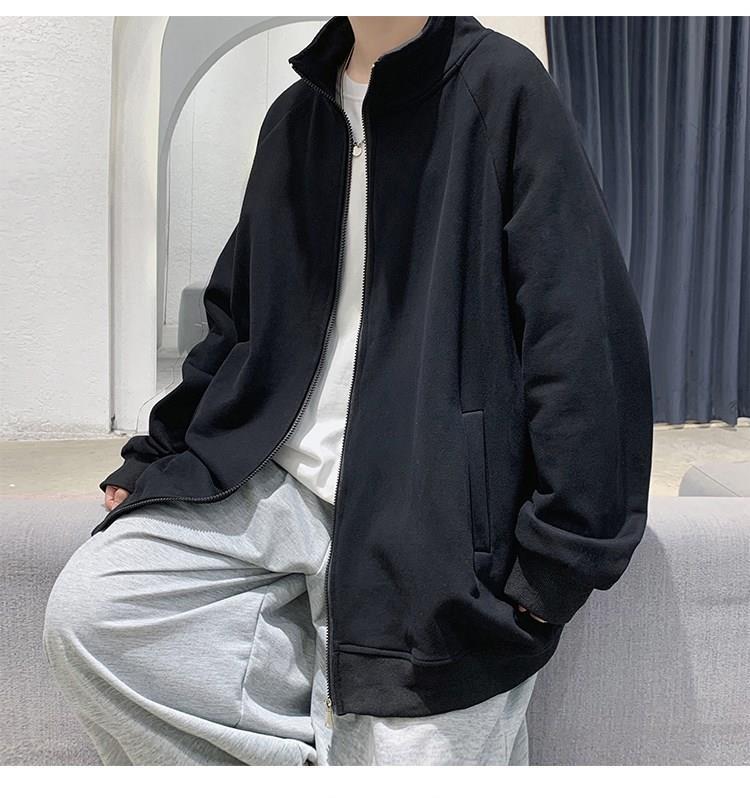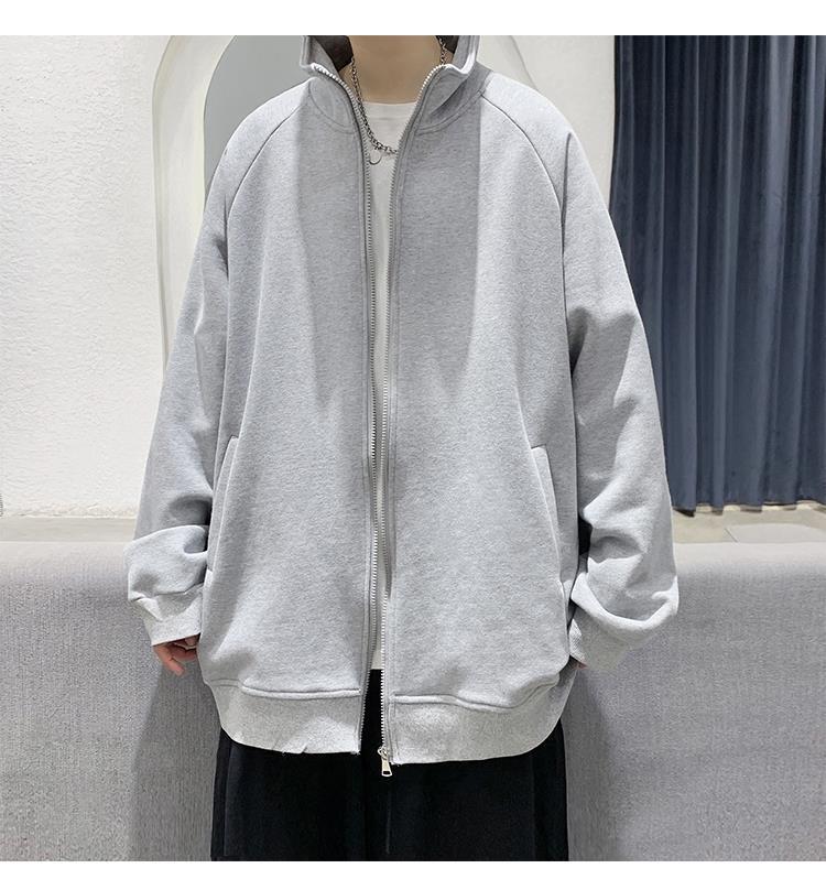 Spring and autumn pure cotton men's couple hoodie, cardigan, stand-up collar, loose, trendy, casual and sporty jacket, simple top
