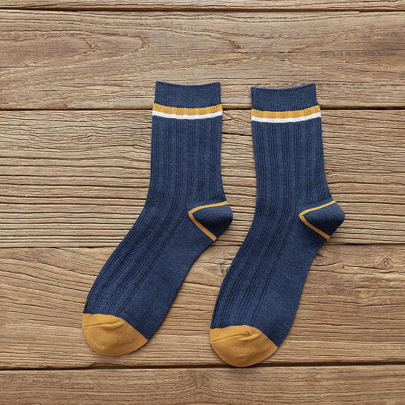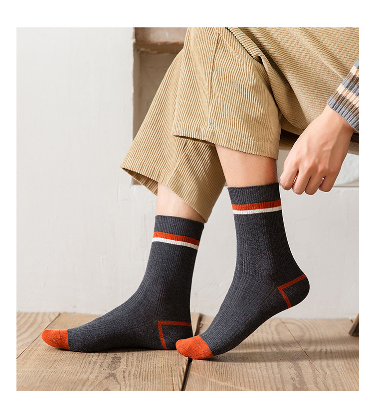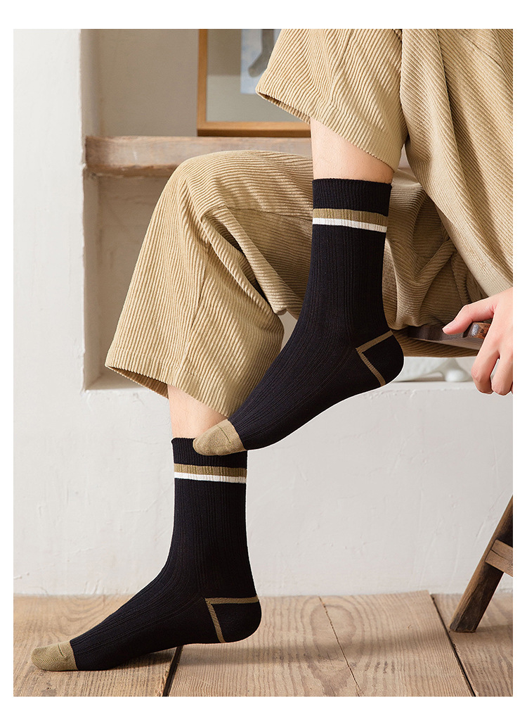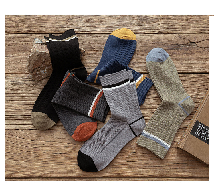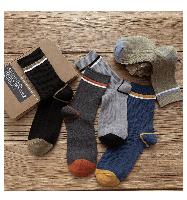 Spring and autumn versatile double-needle mid-calf socks, men's cotton socks, business combed cotton socks, factory direct sales
