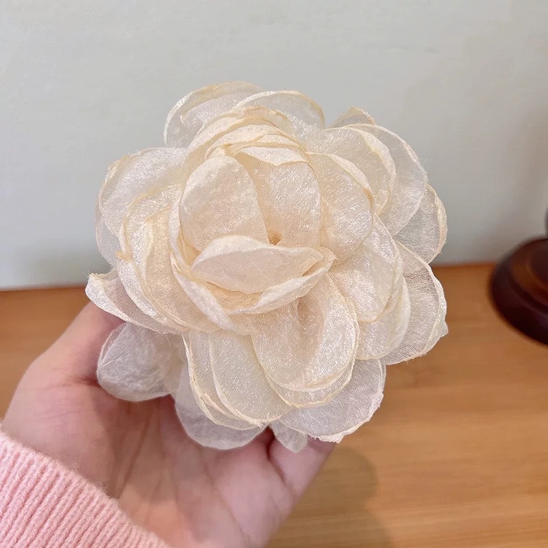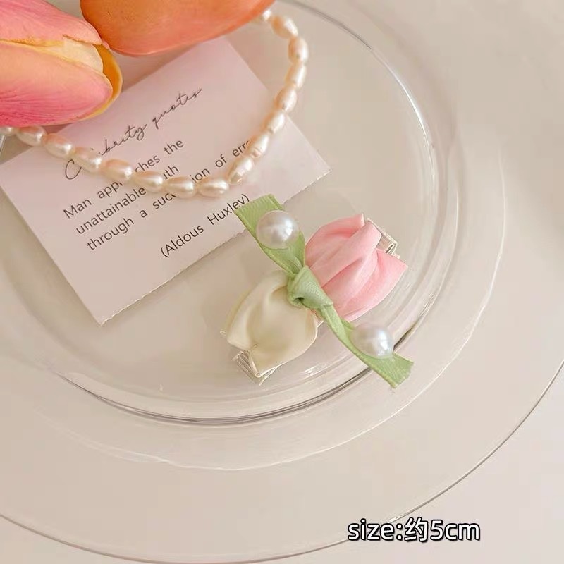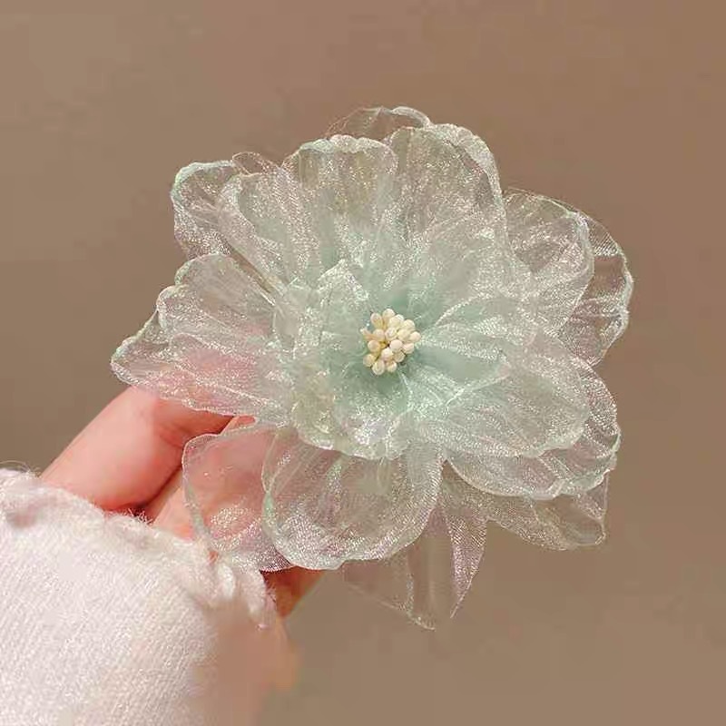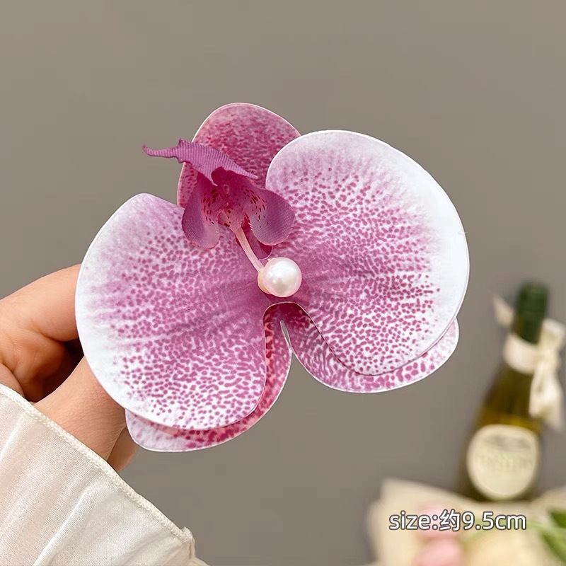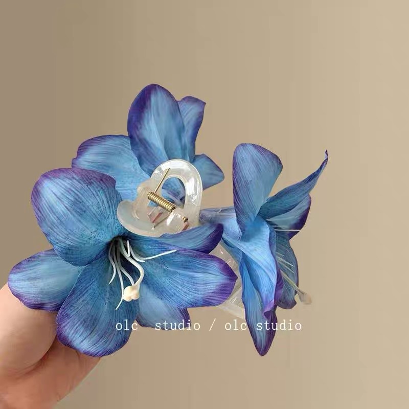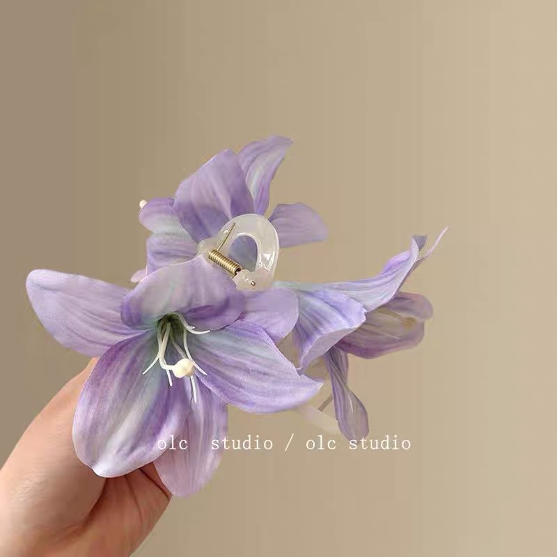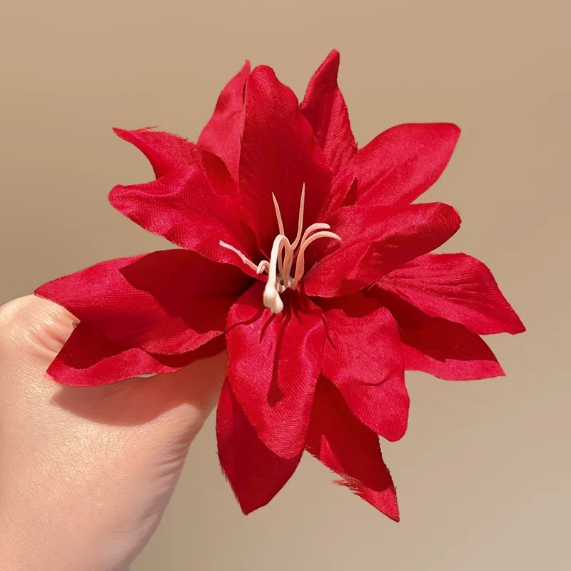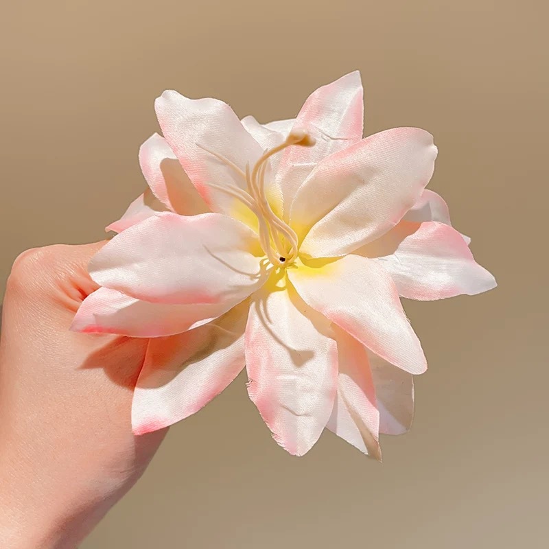 Spring and summer atmosphere, seaside vacation style, super fairy-like simulation lily flower, hibiscus flower hairpin, side bangs, broken hair clip