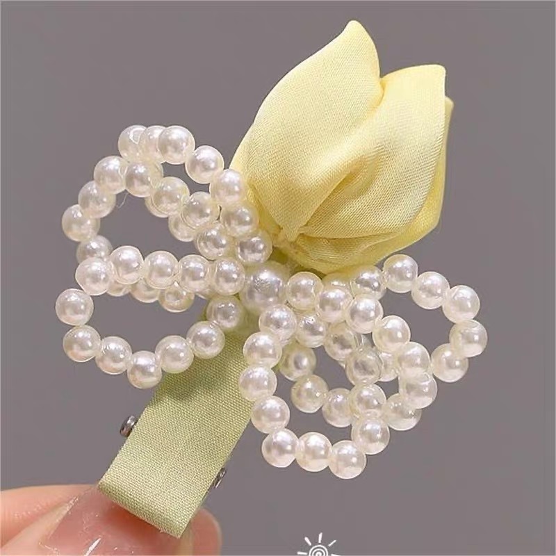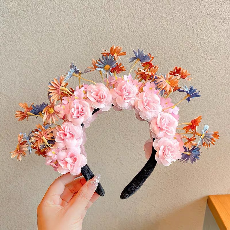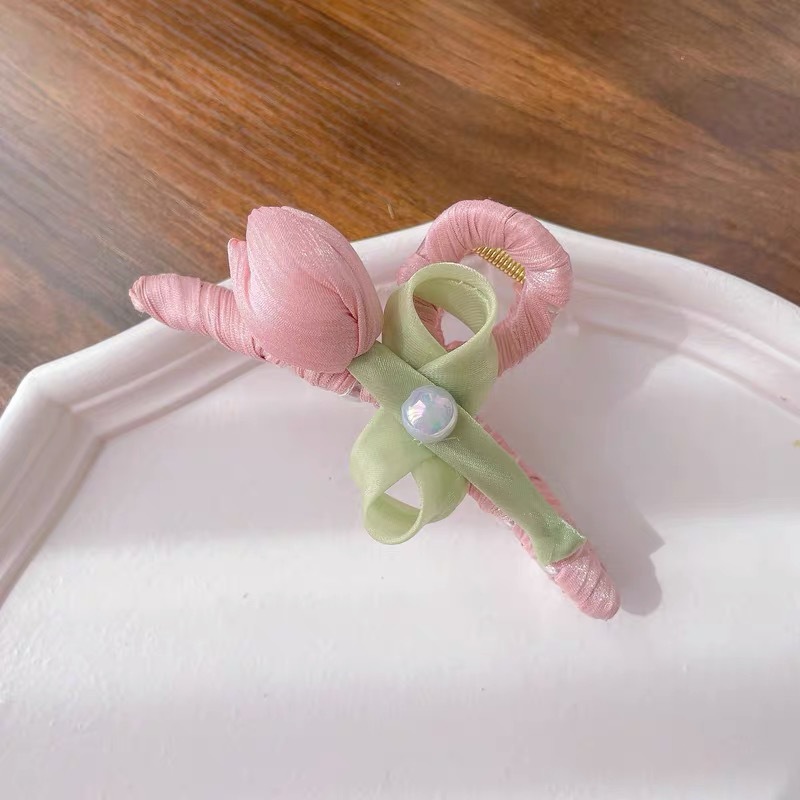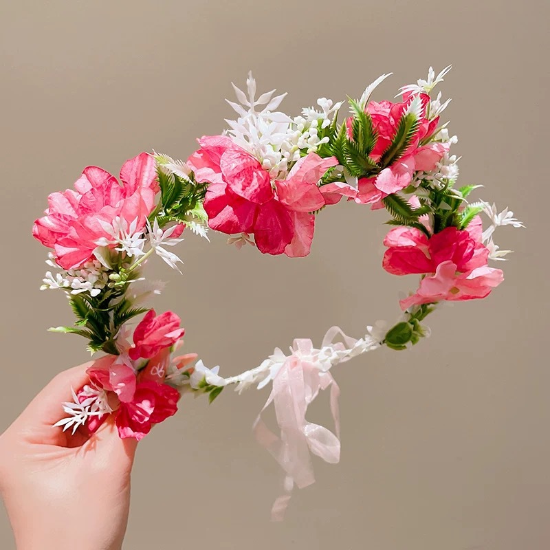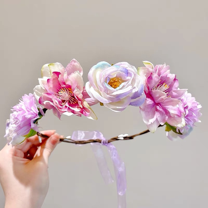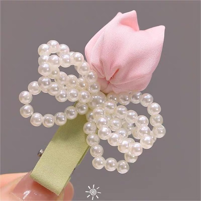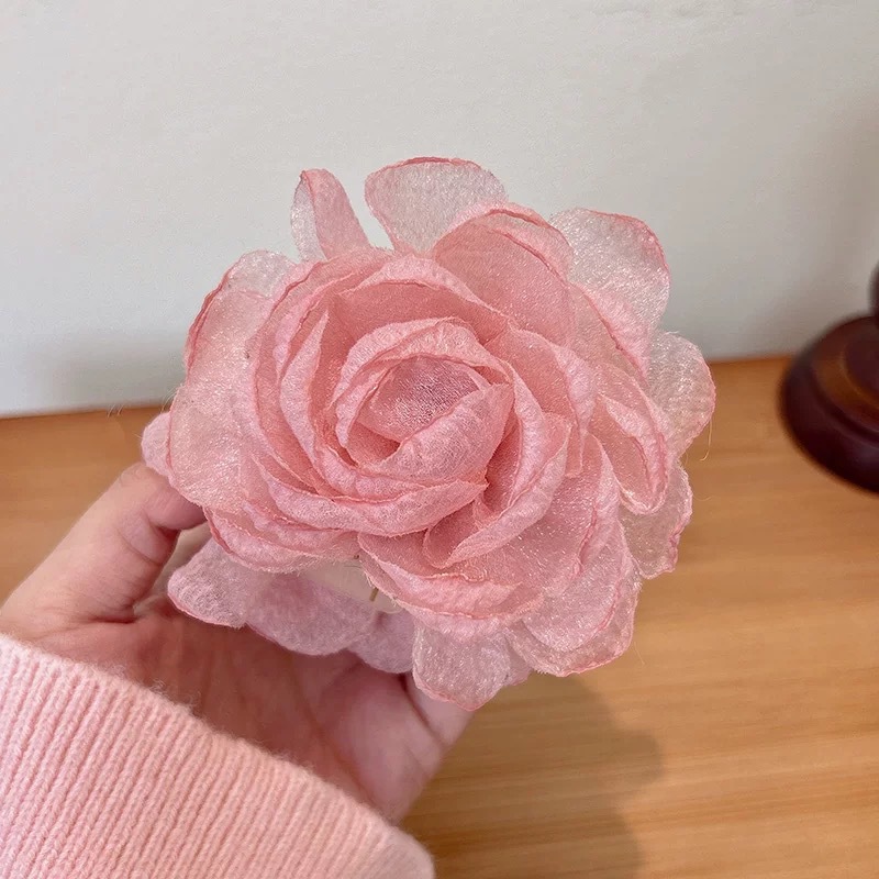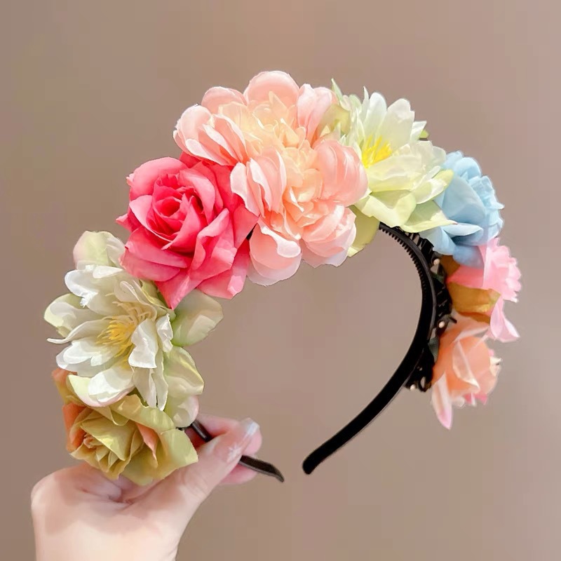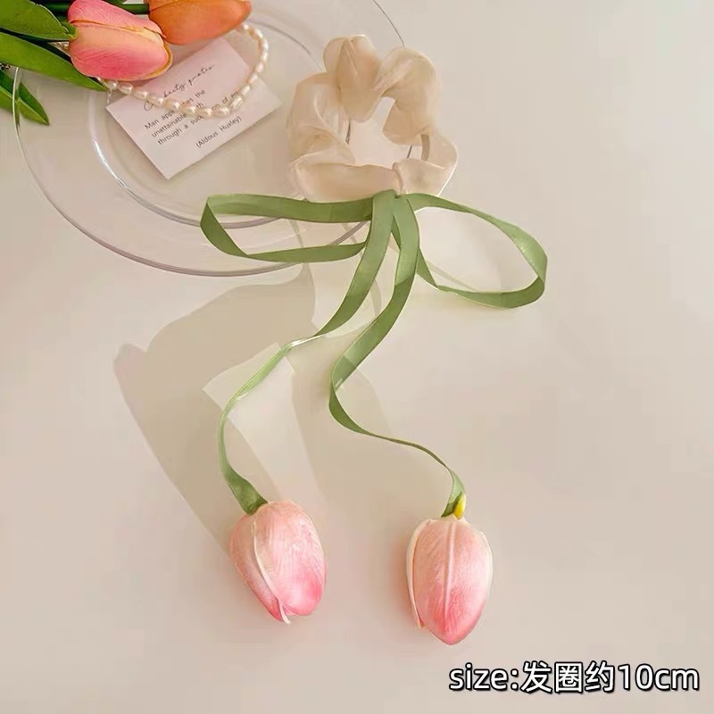 Spring and summer atmosphere, seaside vacation style, super fairy-like simulation lily flower, hibiscus flower hairpin, side bangs, broken hair clip