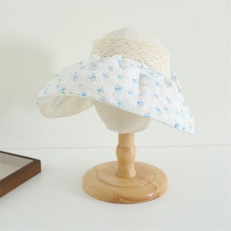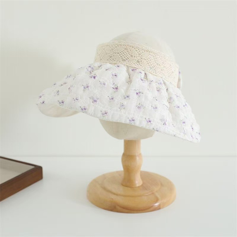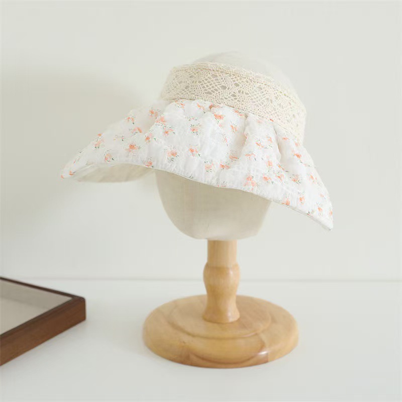 Spring and summer children's thin sun hats, girls' sweet princess empty top sun hats, small floral and large brim sun hats