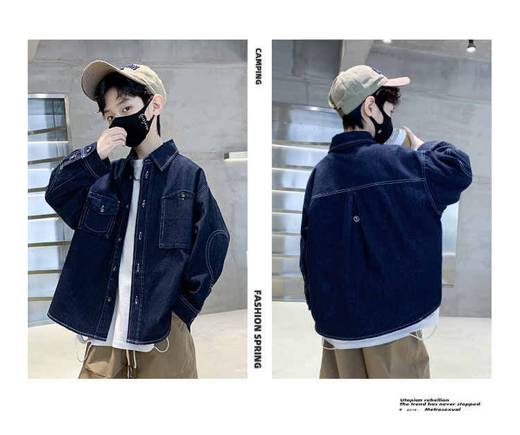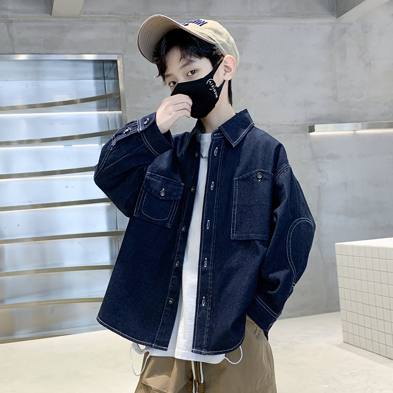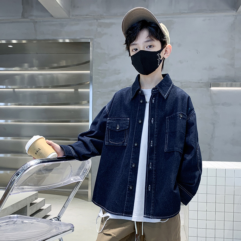 Spring boys' denim shirts, spring children's clothing, long-sleeved shirts for boys, thin denim jackets for boys