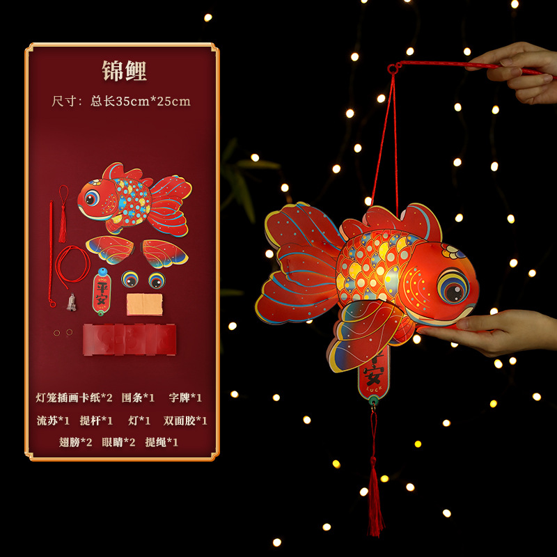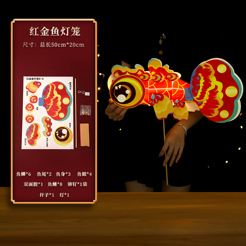 Spring Festival Chinese-style New Year dragon dance, 3D cardstock, handmade goldfish diy materials, hand-held Dragon Year toy lanterns