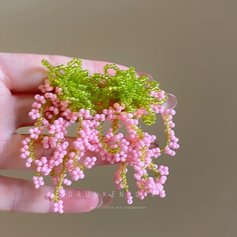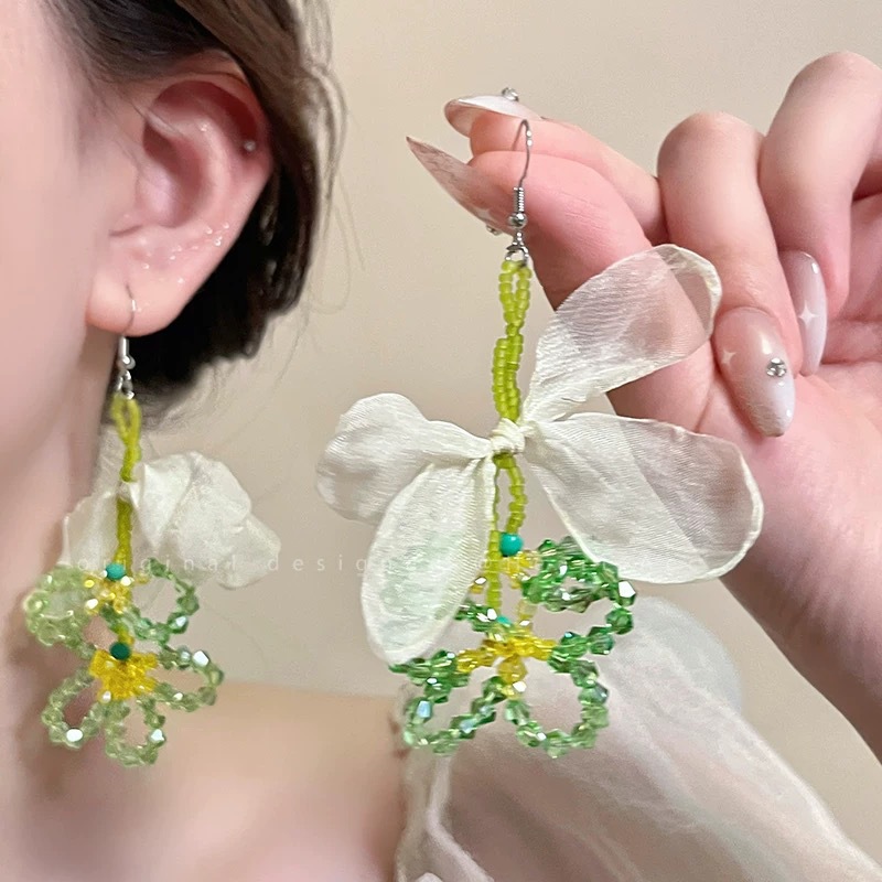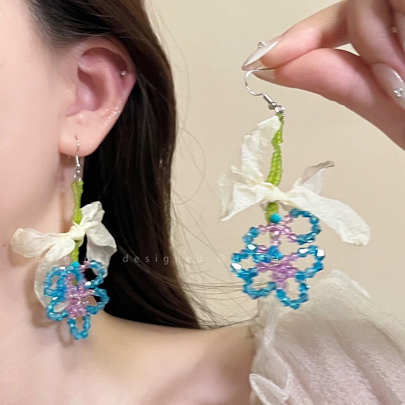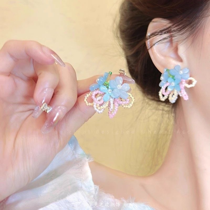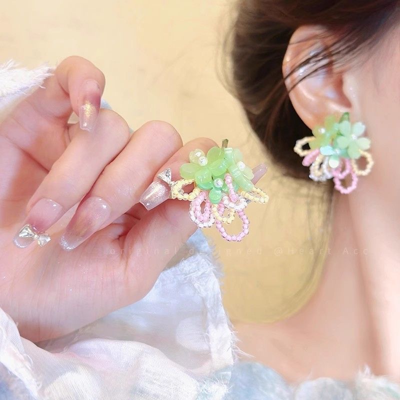 "Spring Field in Full Bloom" Spring and Summer beaded, niche style, high-end accessories, tassel vacation ear clips, face-enhancing small earrings for women