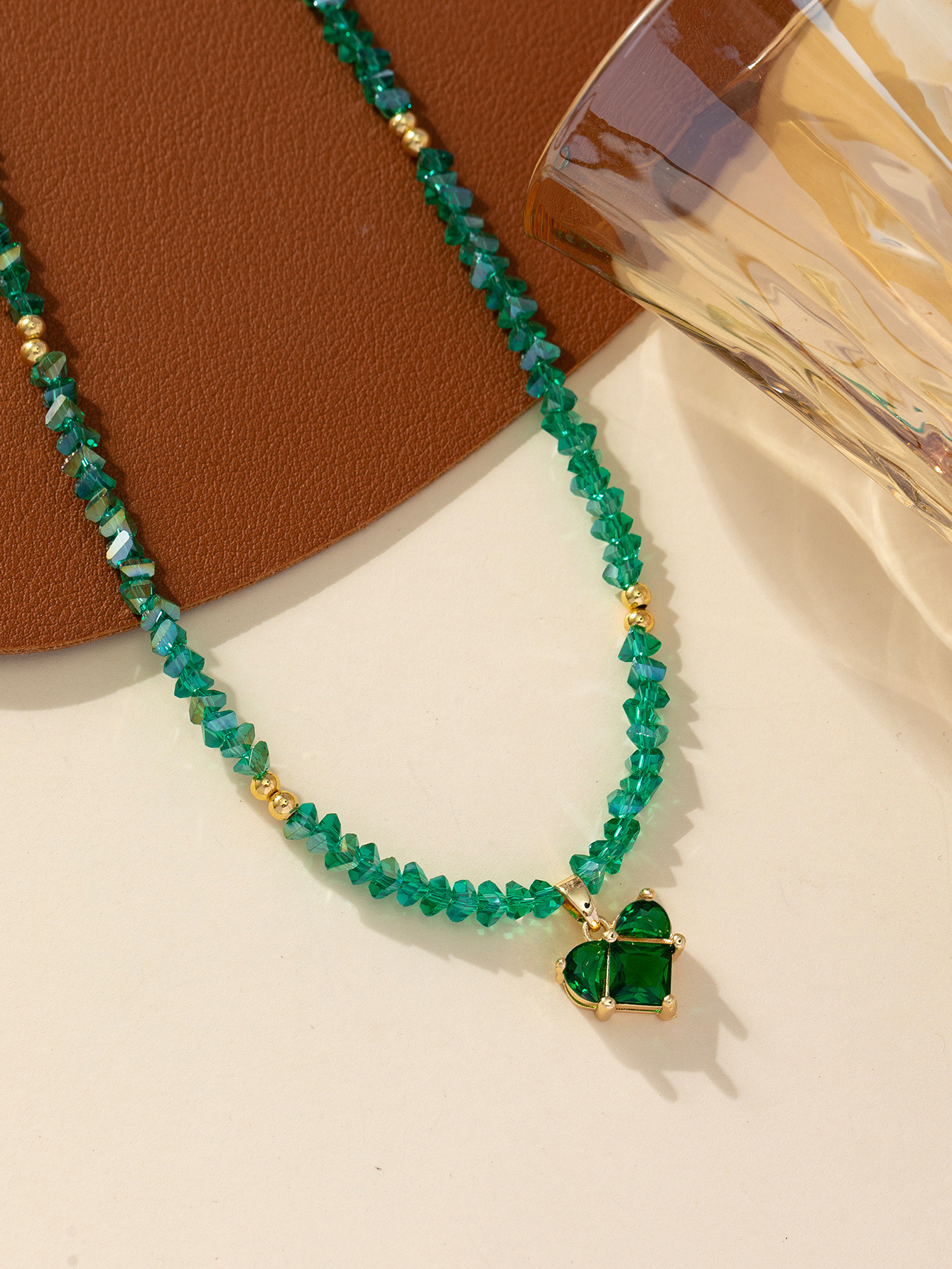Spring new irregular-shaped crystal handcrafted beaded heart diamond pendant necklace, niche design, high-end collarbone chain