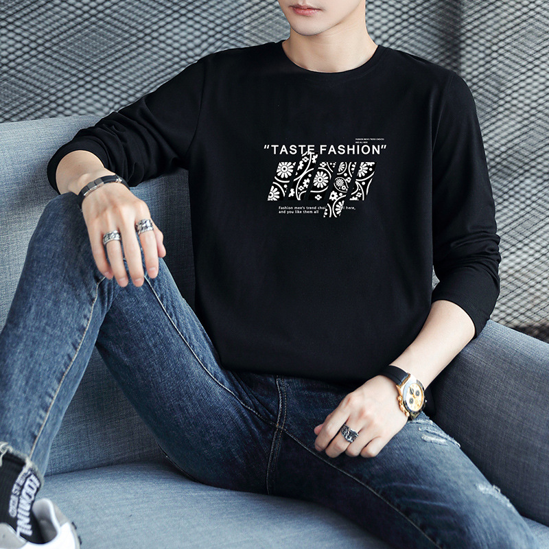 Spring new long-sleeved T-shirts, round-neck printed men's sweatshirts, loose tops, casual and versatile men's clothing