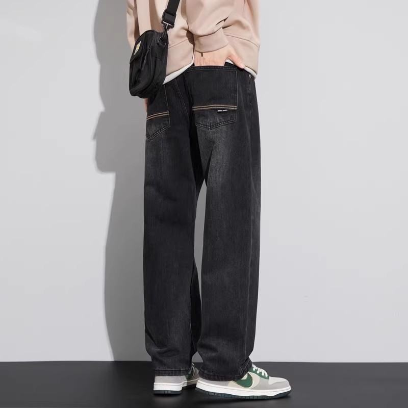 Spring straight-leg jeans for men, 2025 new style American retro regular wide-leg casual long pants