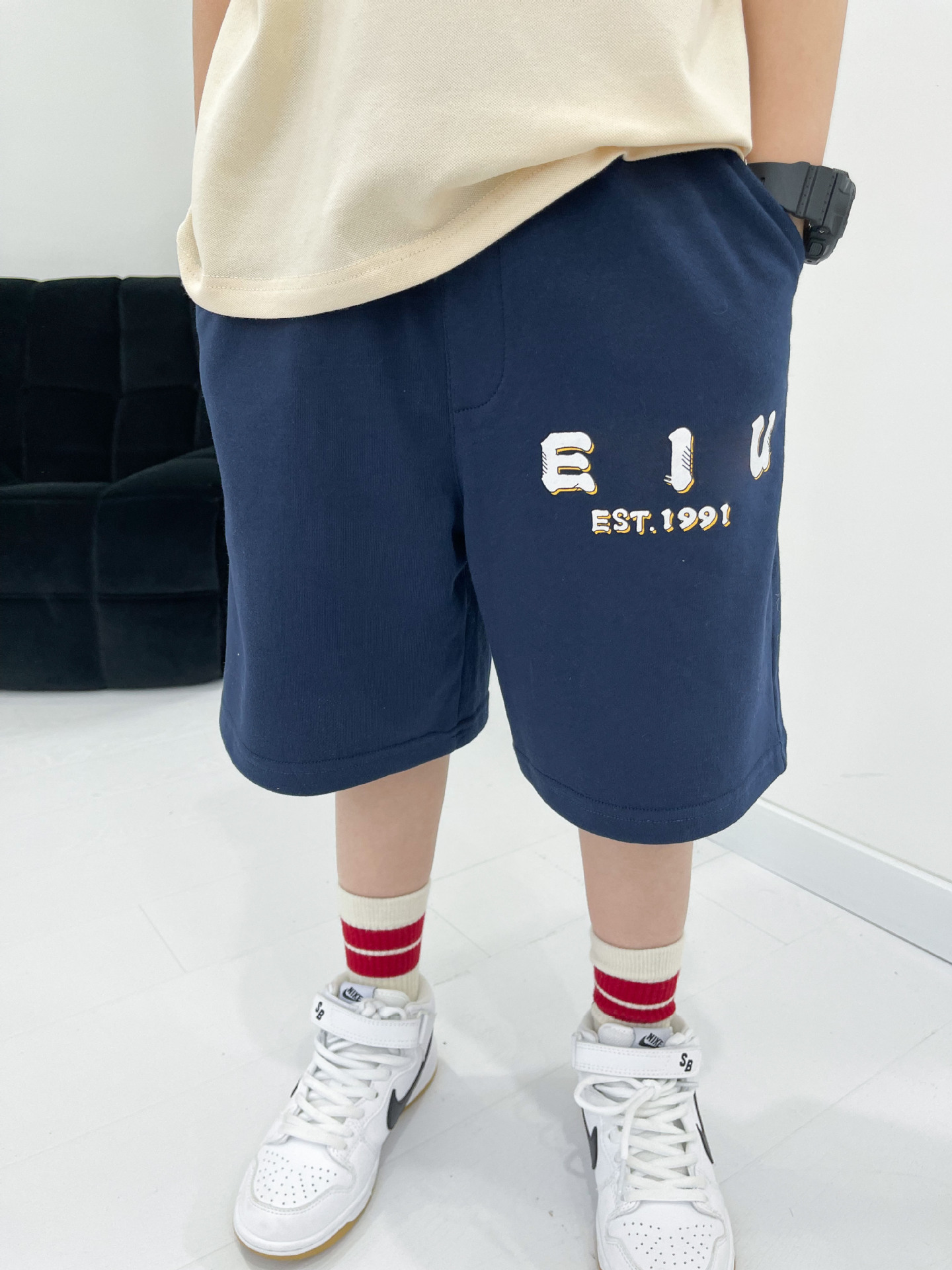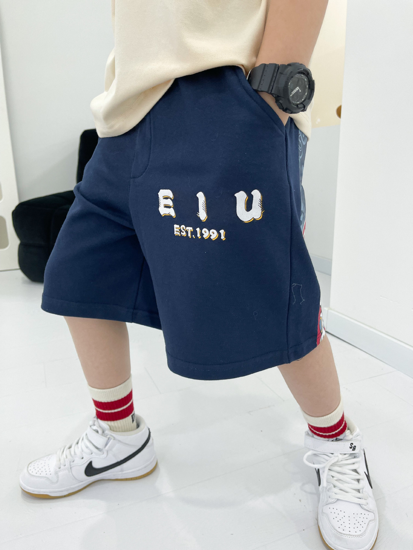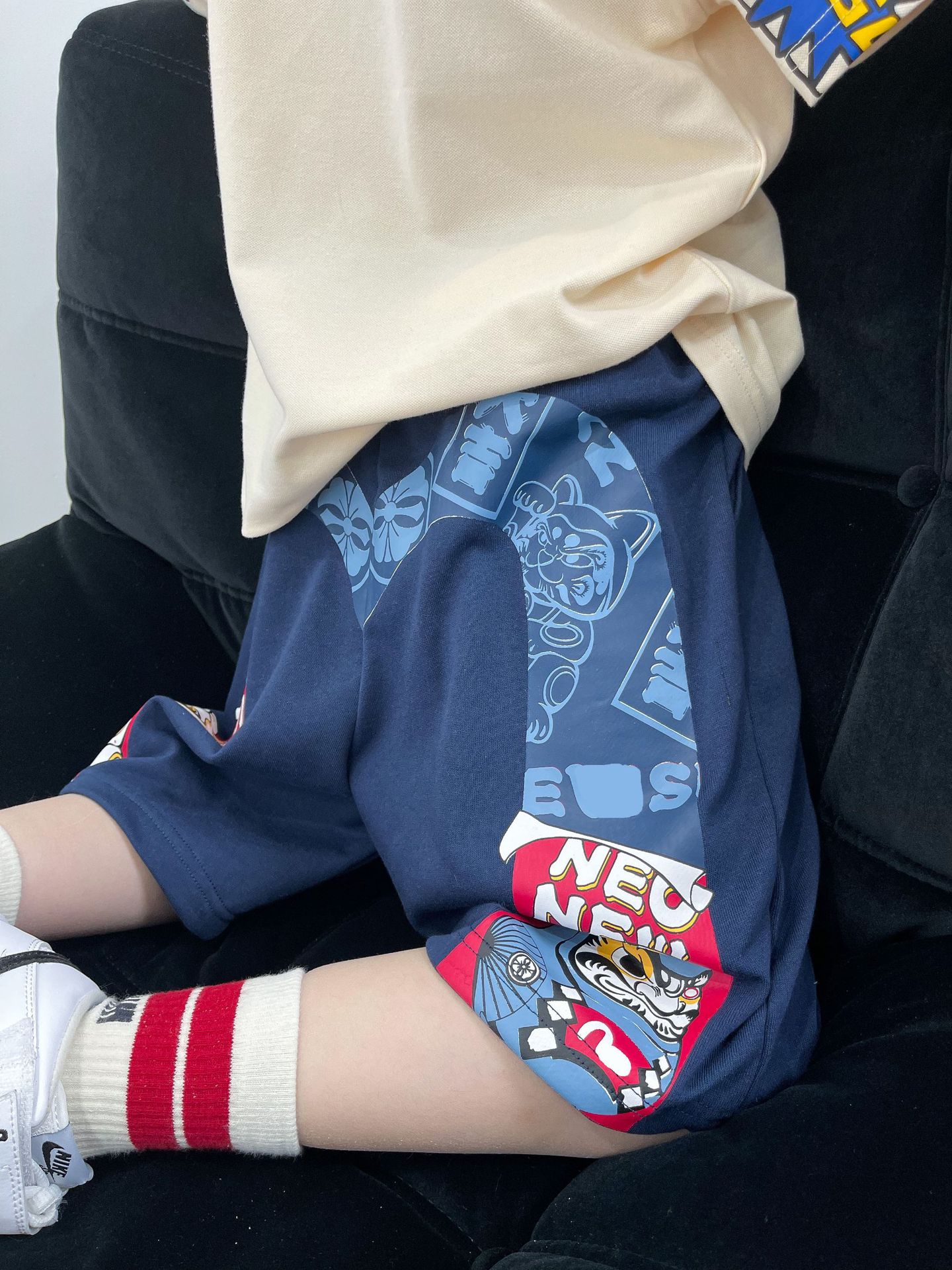 Spring/Summer 2023 trendy Japanese boys' M letter-shaped Maneki Neko casual loose sweatshirt and boys' shorts