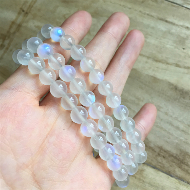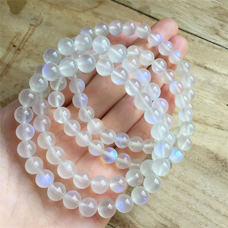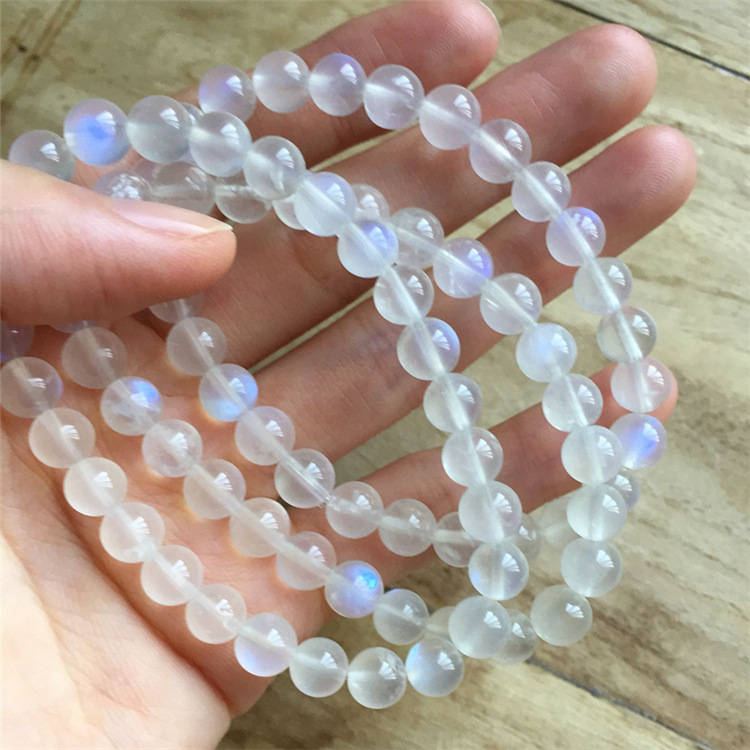 ';Sri Lankan natural ice seed blue moonlight cream moonstone bracelet, couple's bracelet, blue light jewelry, gift