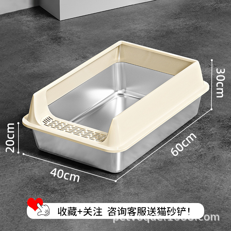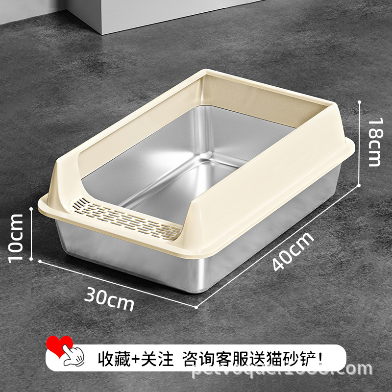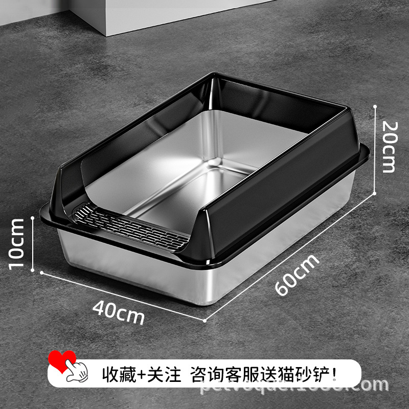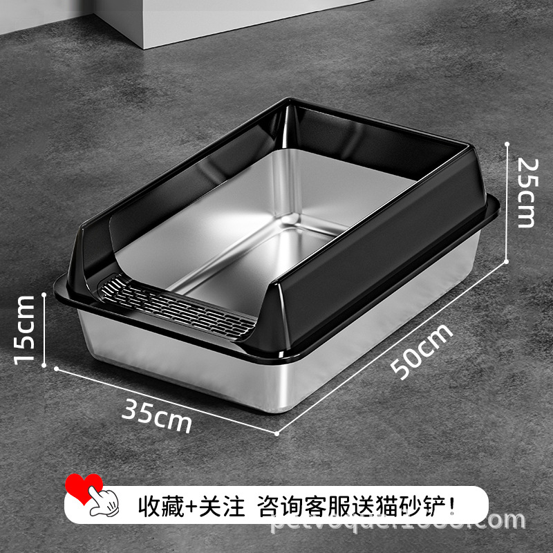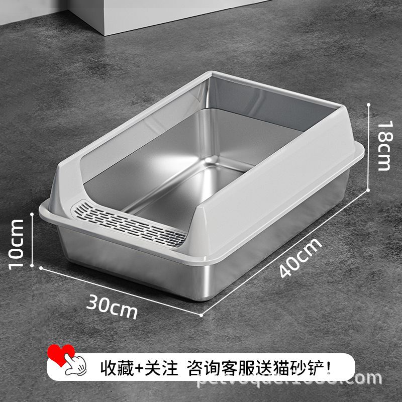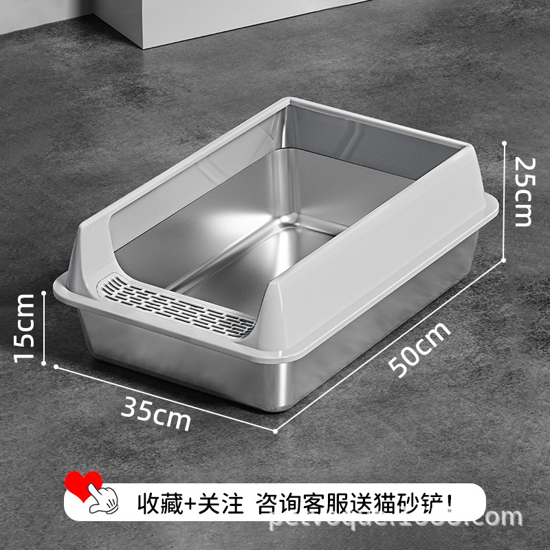 Stainless steel cat litter box, splash-proof and easy-to-clean cat toilet, extra-large open thickened semi-enclosed cat litter box