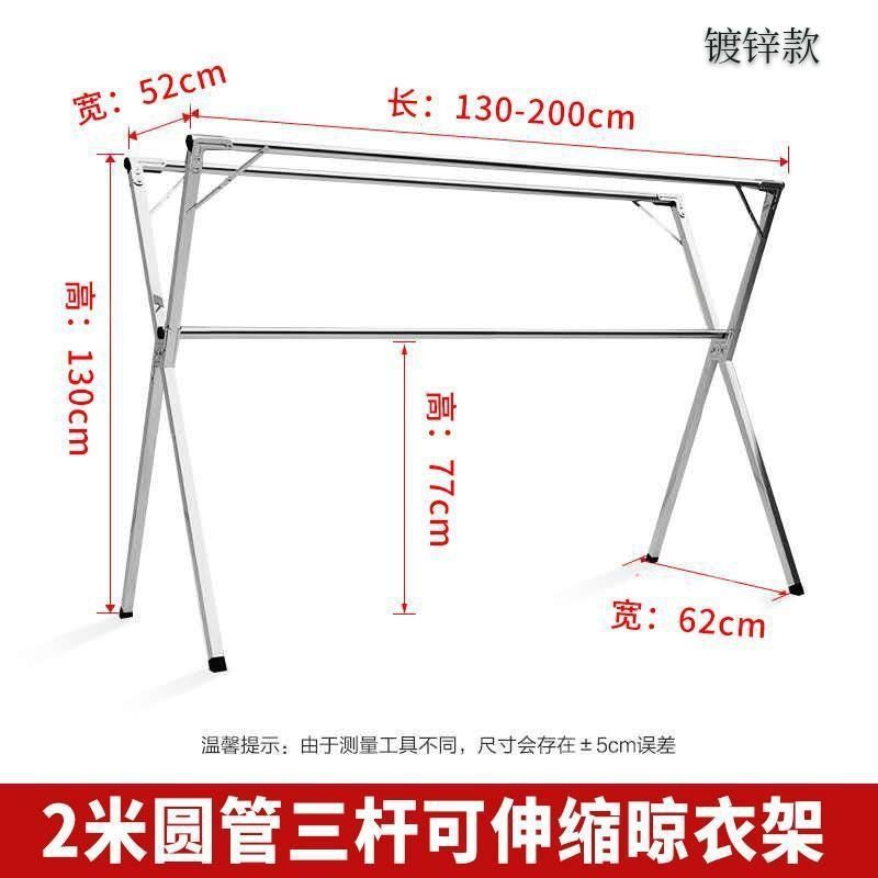 Extra thick stainless steel 2.0-meter telescopic double rods +30 wind hooks