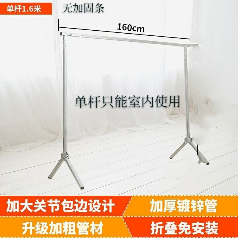 Extra thick stainless steel 1.6-meter telescopic single pole +10 wind hooks