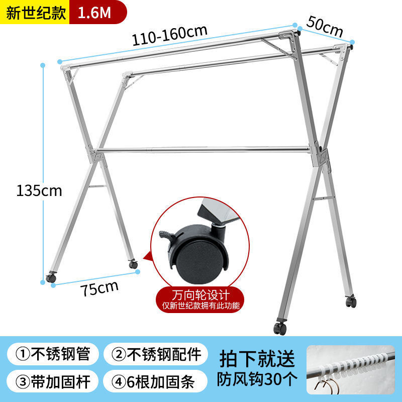 Extra thick stainless steel 1.6-meter telescopic double rods +30 wind hooks