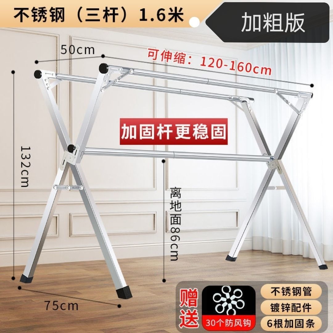 Extra-thick all-stainless steel 1.6 telescopic double rods +30 wind hooks