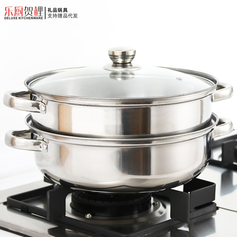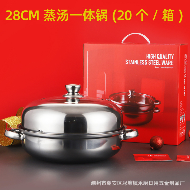 Stainless steel pot soup steamer 28cm with magnetic steaming hot pot, double-ear soup pot, induction cooker pot, practical gift cookware wholesale