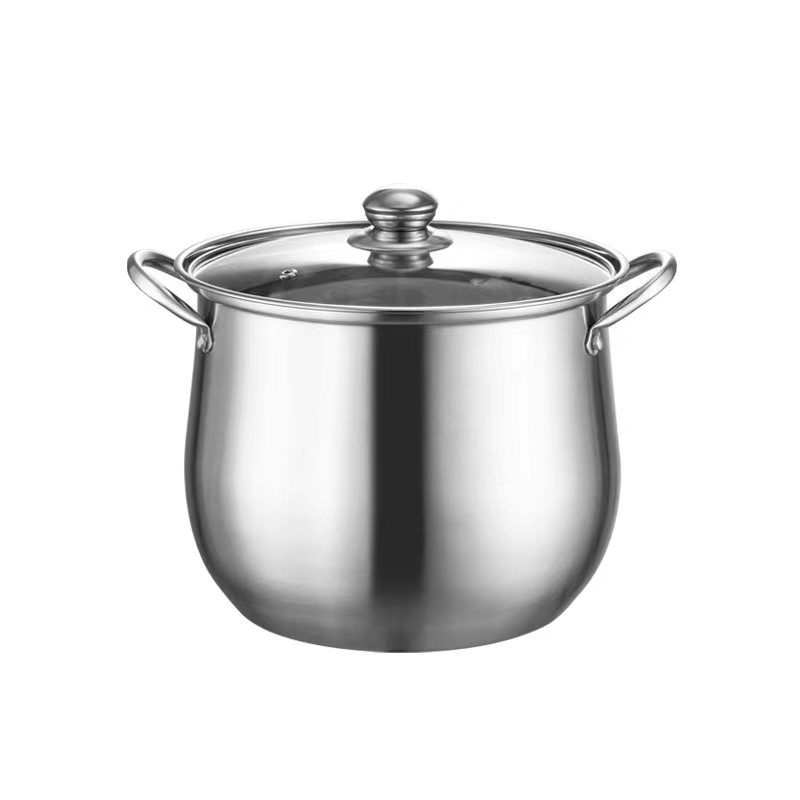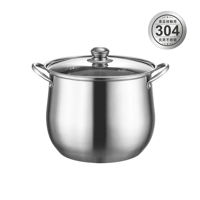 Stainless steel raised and deepened soup pot, large-capacity thickened single-bottom drum-shaped double-ear steaming soup pot, gift wholesale and consignment