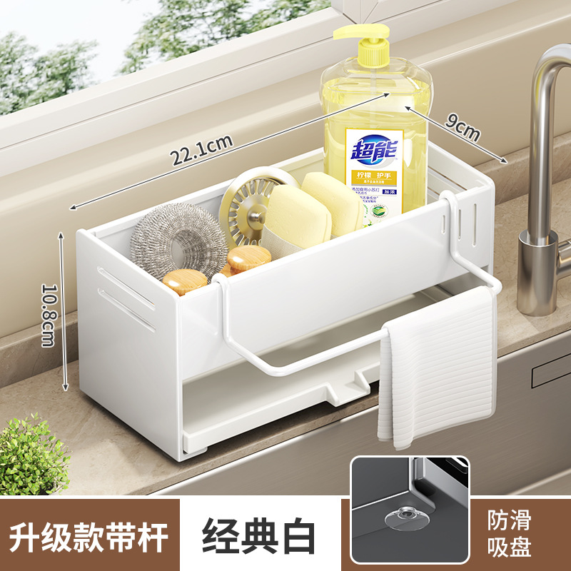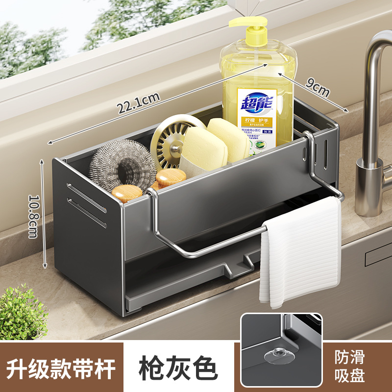 Stainless steel sponge storage rack for kitchen sink, cross-border household sink, dishwashing sink, rag rod, draining and storage rack