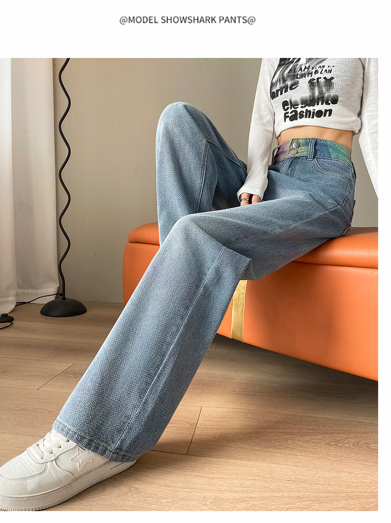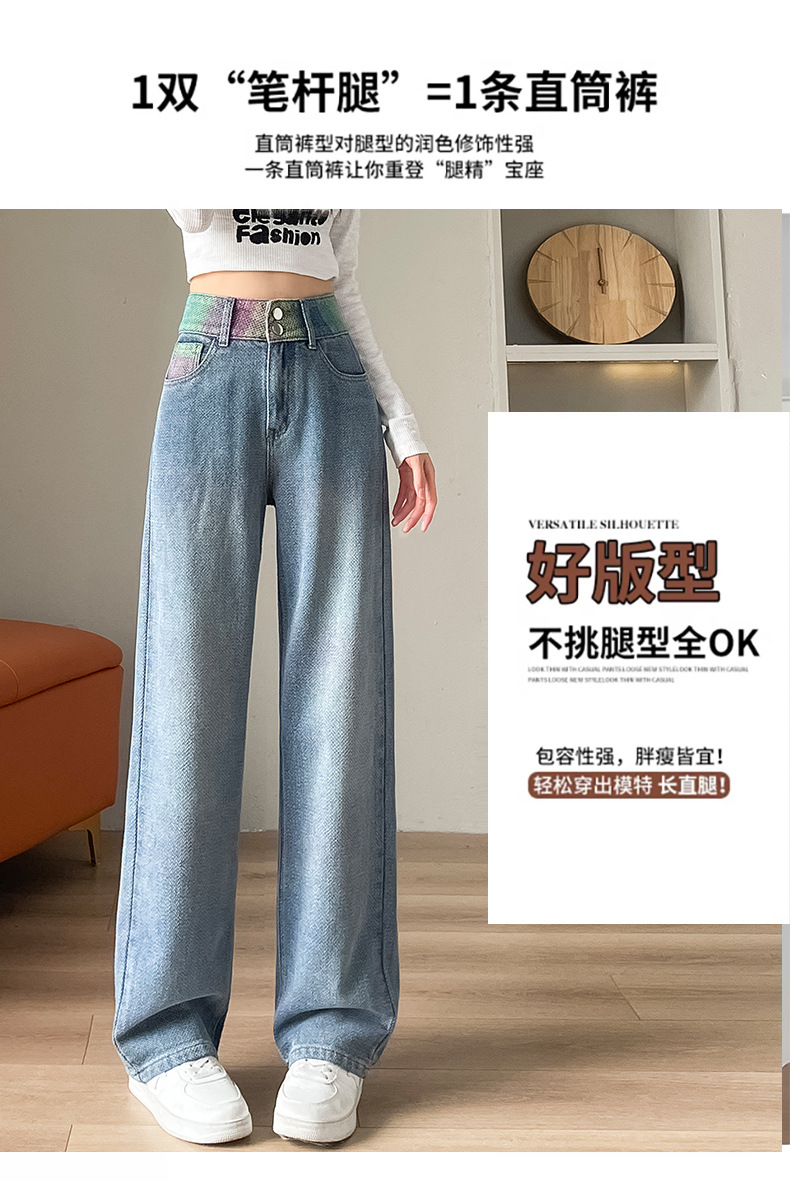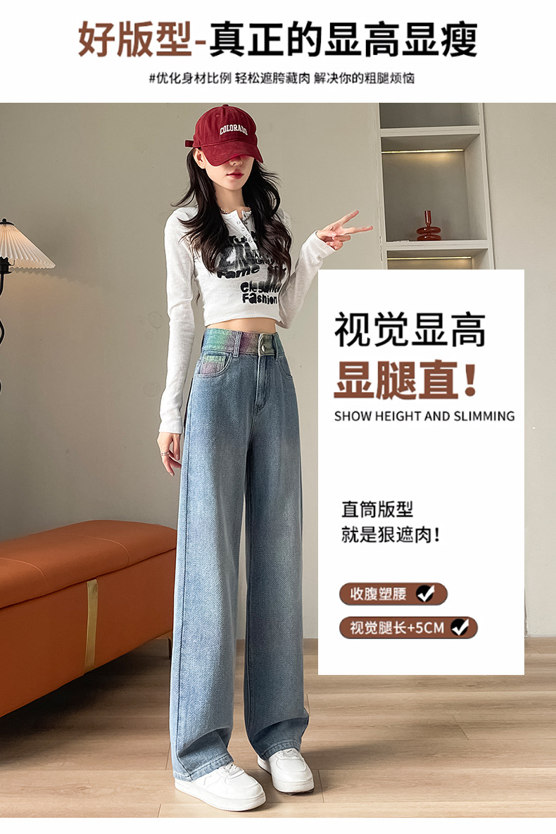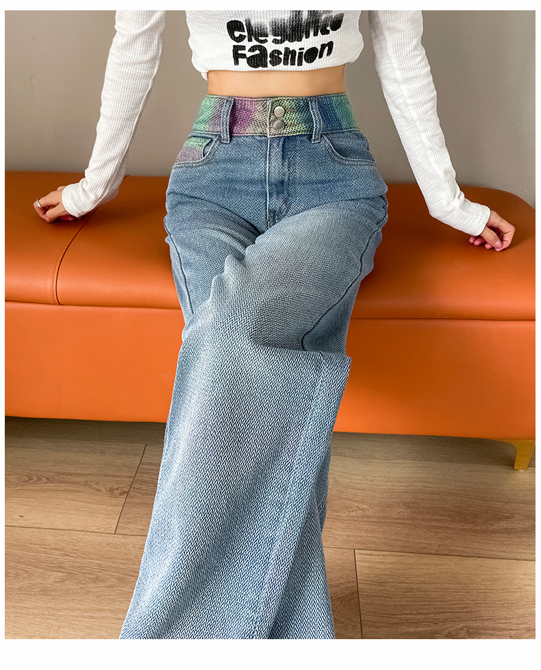 Starry sky pattern straight-leg jeans for women's Spring and autumn 2024 new high-waisted, slimming design gradient wide-leg pants