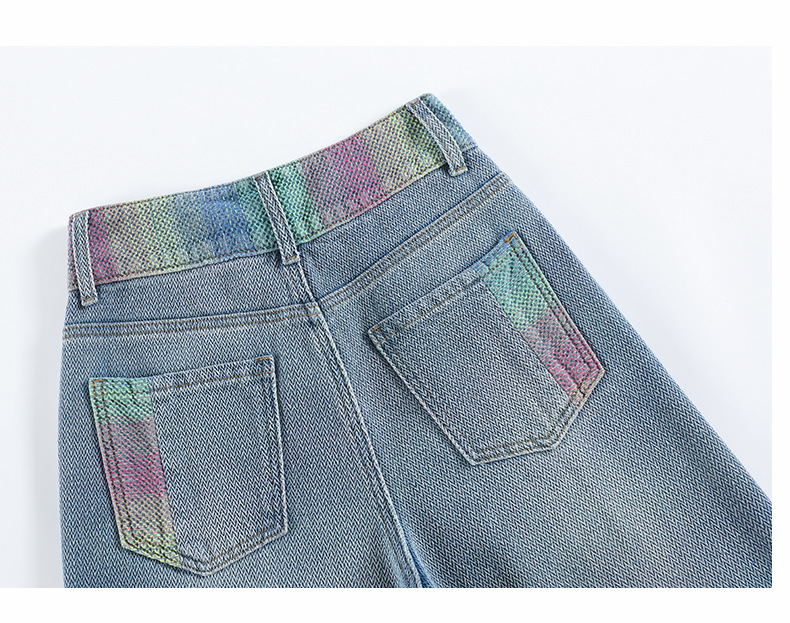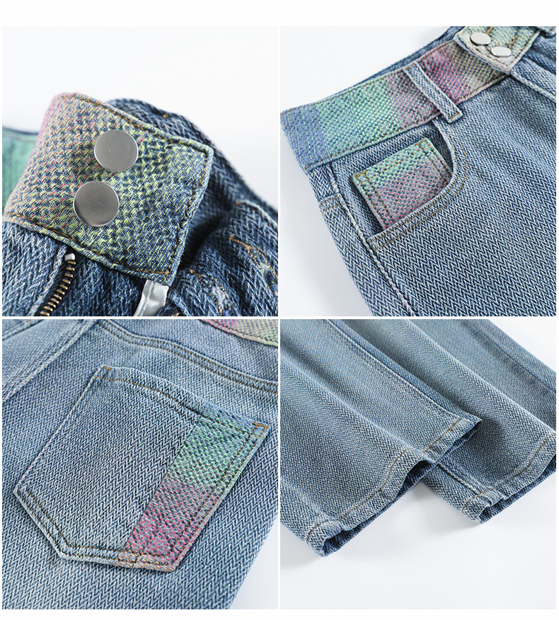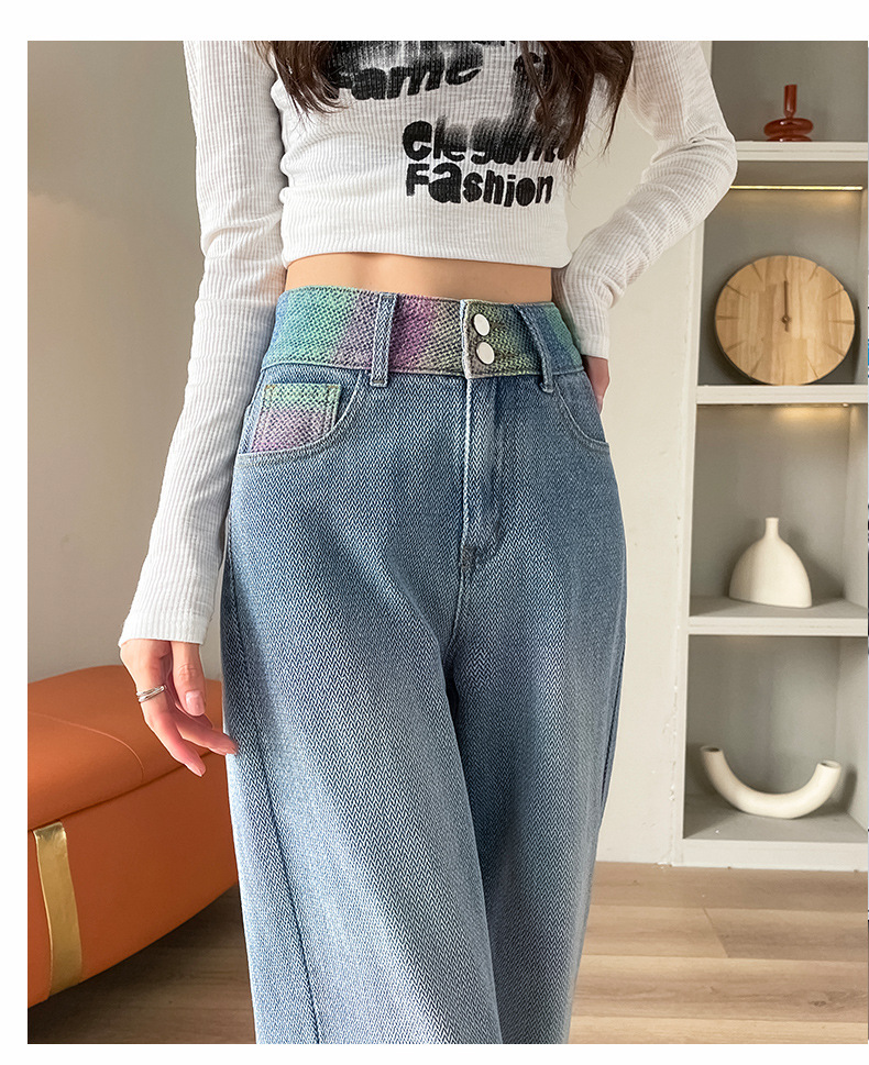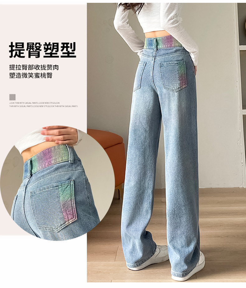 Starry sky pattern straight-leg jeans for women's Spring and autumn 2024 new high-waisted, slimming design gradient wide-leg pants