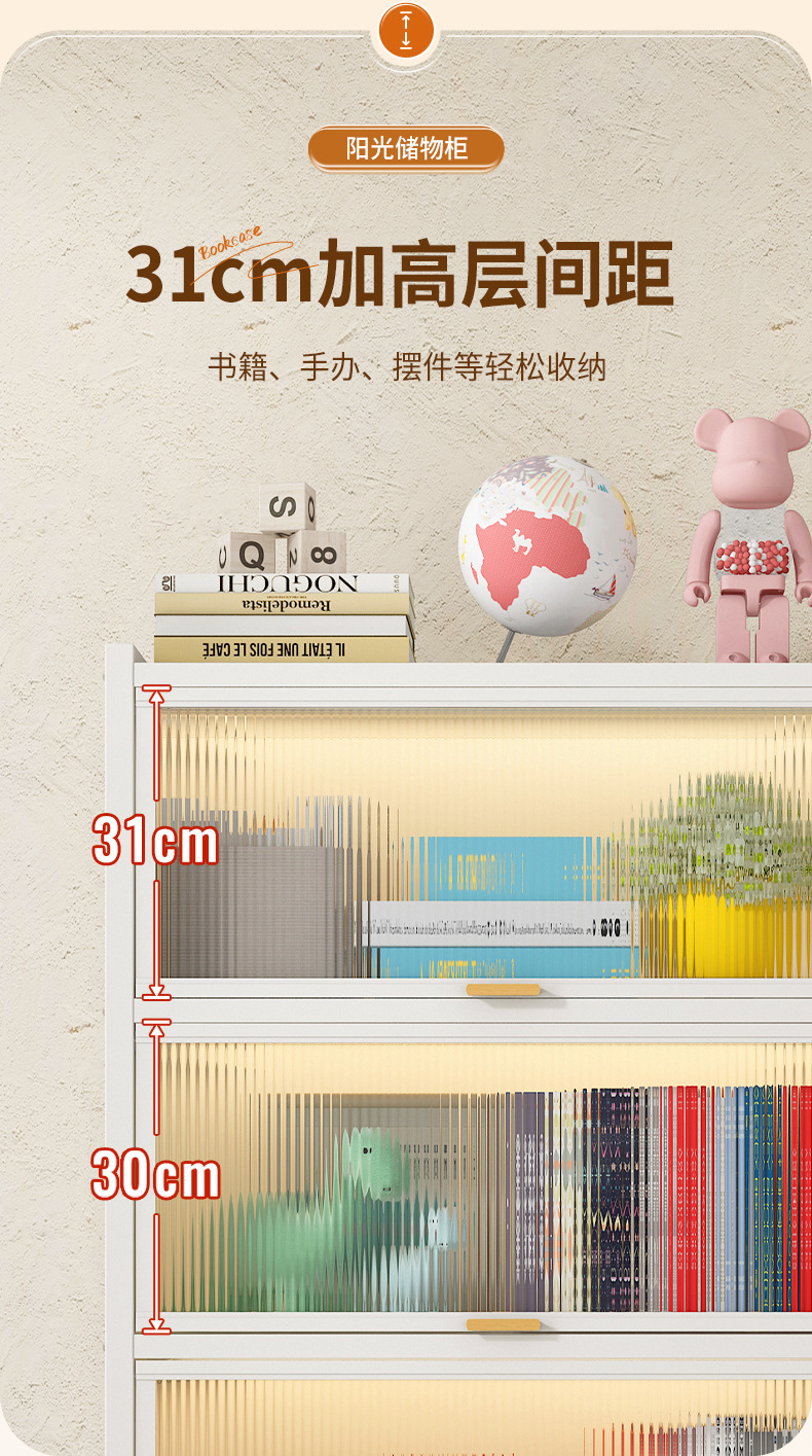 Cloud White 5-door flip-top crystal cabinet door [length 60 cm, width 42 cm, height 183 cm]