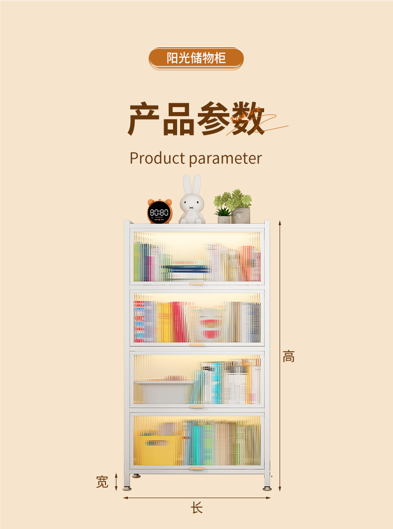 Cloud White 4-door [length 60 cm, width 42 cm, height 149 cm] Flip-top crystal cabinet door