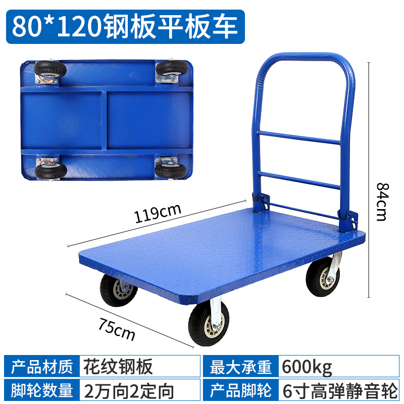 80X120 steel plate car equipped with 6-inch heavy-duty silent wheels