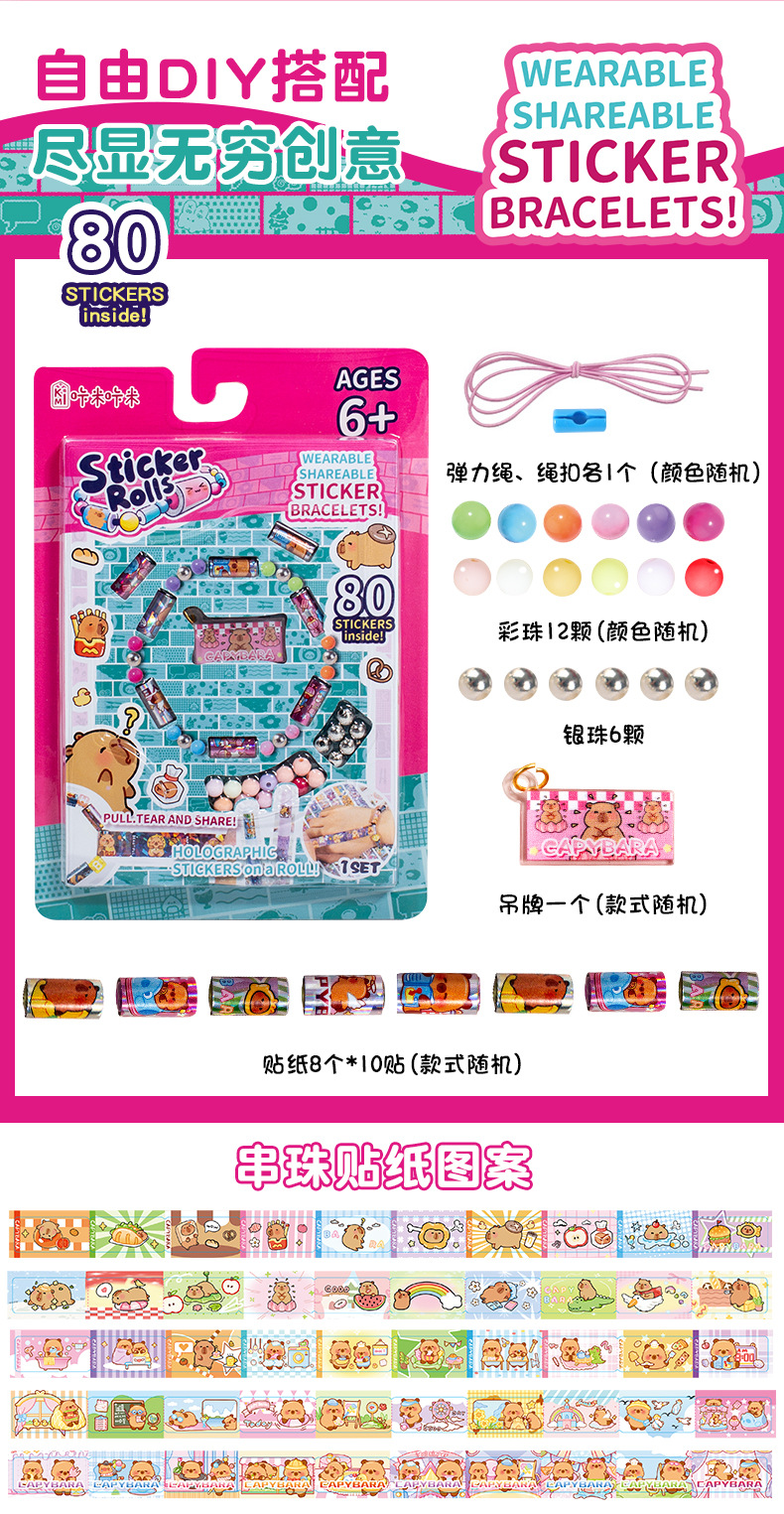 Sticker beaded children's creative toys, sticker wristbands, DIY tear-off sticker bracelets, cross-border wholesale