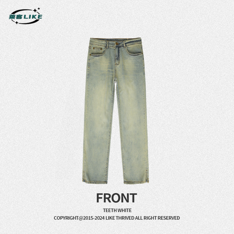 Straight-leg casual jeans, American street washed pants, retro loose and simple casual denim trousers K206