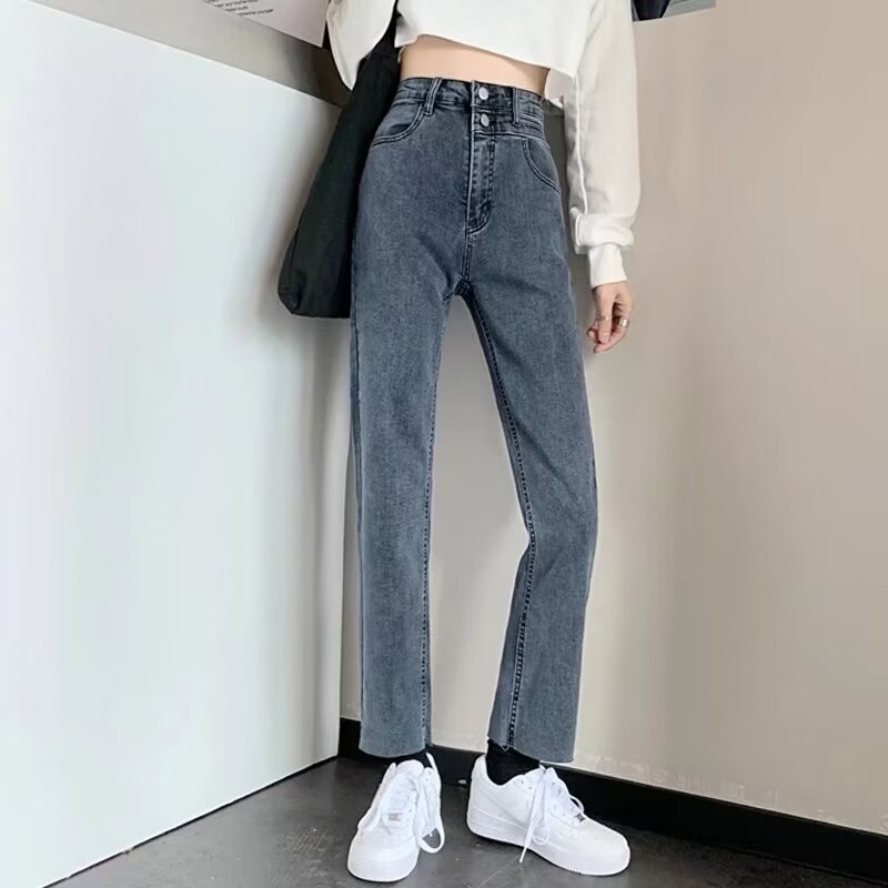 Straight-leg jeans for women, slimming Korean style 2023 Spring and Autumn new high-waisted cigarette tube pants, versatile and slimming, 9-point pants trend