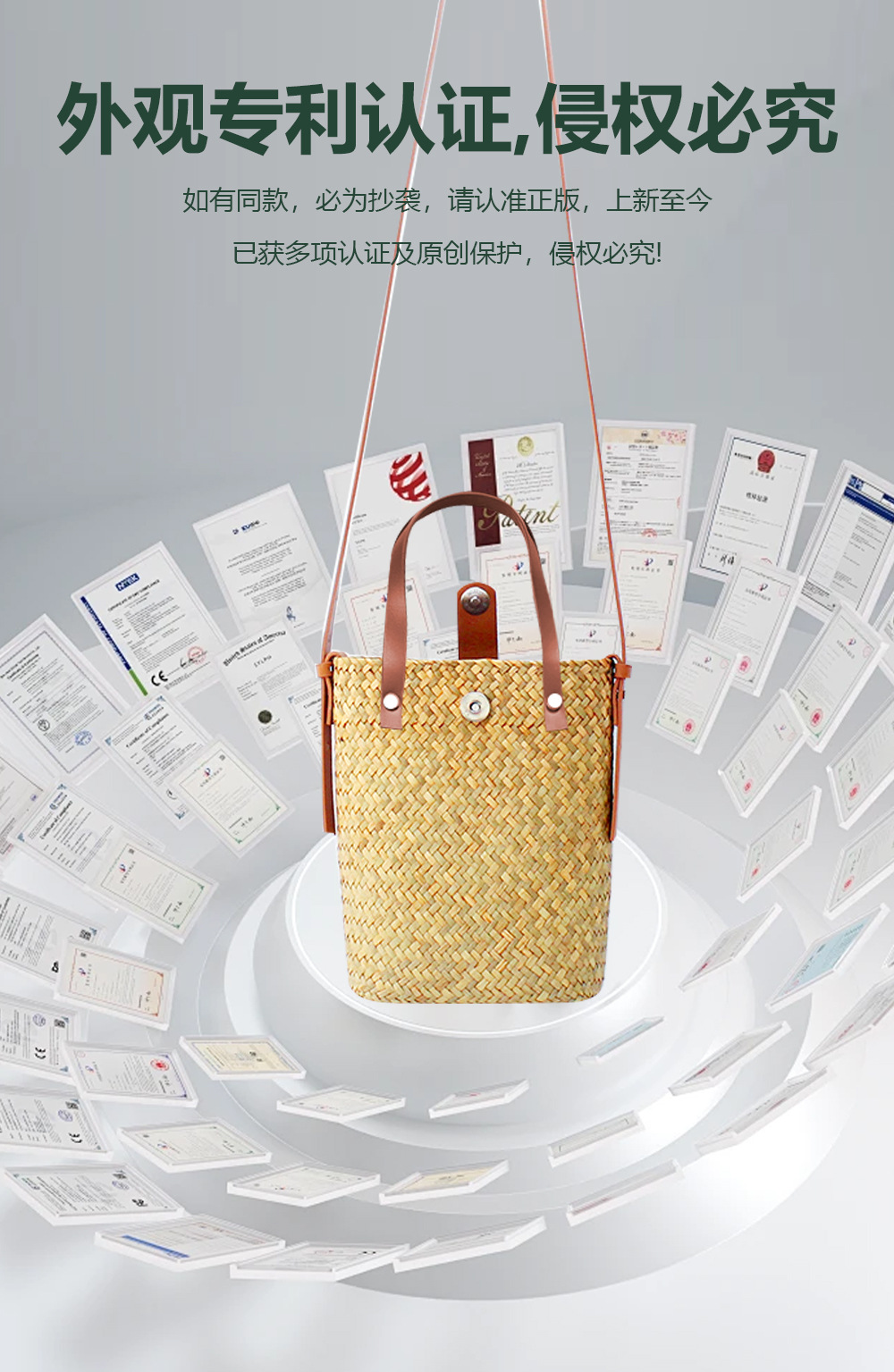 Jian Gu Company is committed to deeply embedding the culture of high-end pure hand-woven bags, inheriting excellent handcrafting techniques, and constantly presenting exquisite and elegant straw bags to people from all walks of life who pursue the taste of high-end straw bags