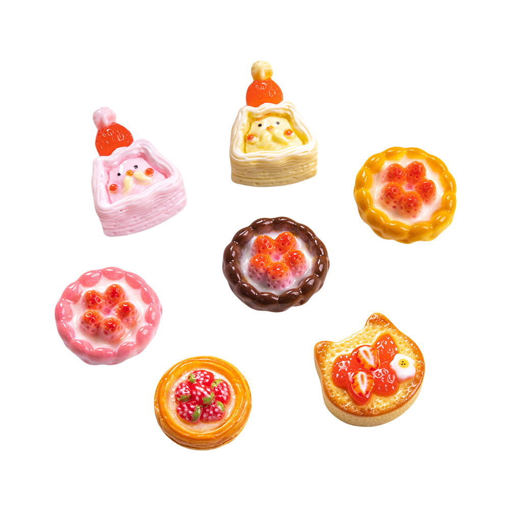 Strawberry cake food toy resin small accessories, diy hairpin accessories, dessert house miniature food toys, children's toy accessories