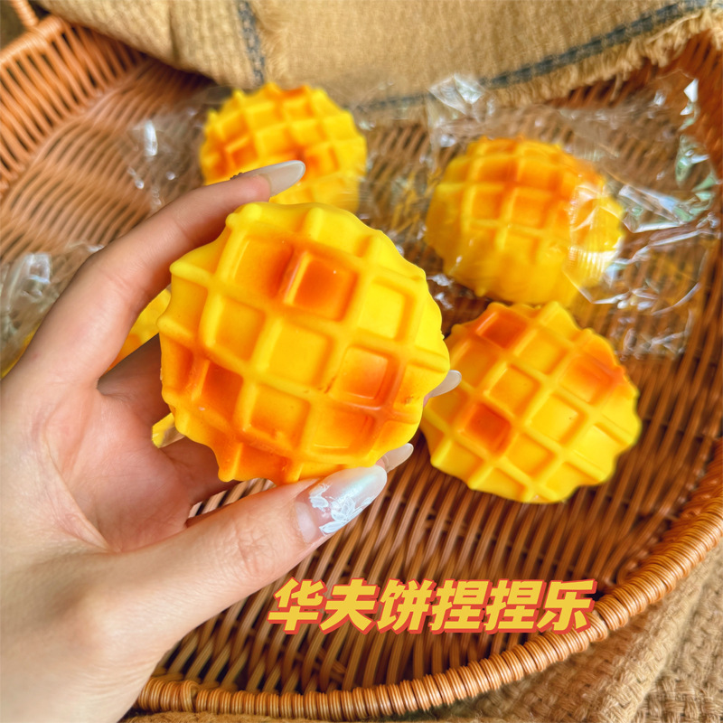 Street stall night market, new and unique simulation waffle, flour release ball, food play, pinching fun, children's stress-relieving small toys