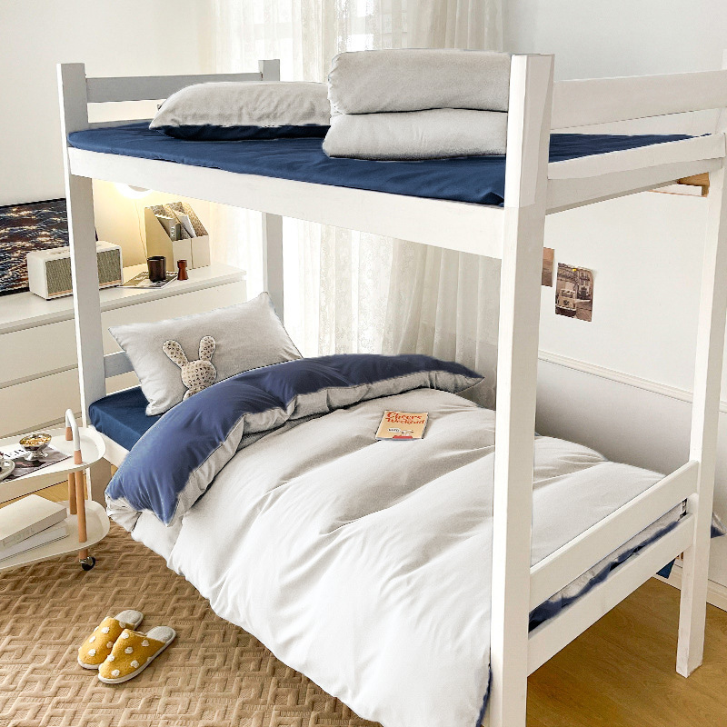 Student dormitory six-piece set, complete single bed, bunk bed, solid color quilt cover, brushed three-piece set, autumn and winter style, other categories, essential items for dormitories