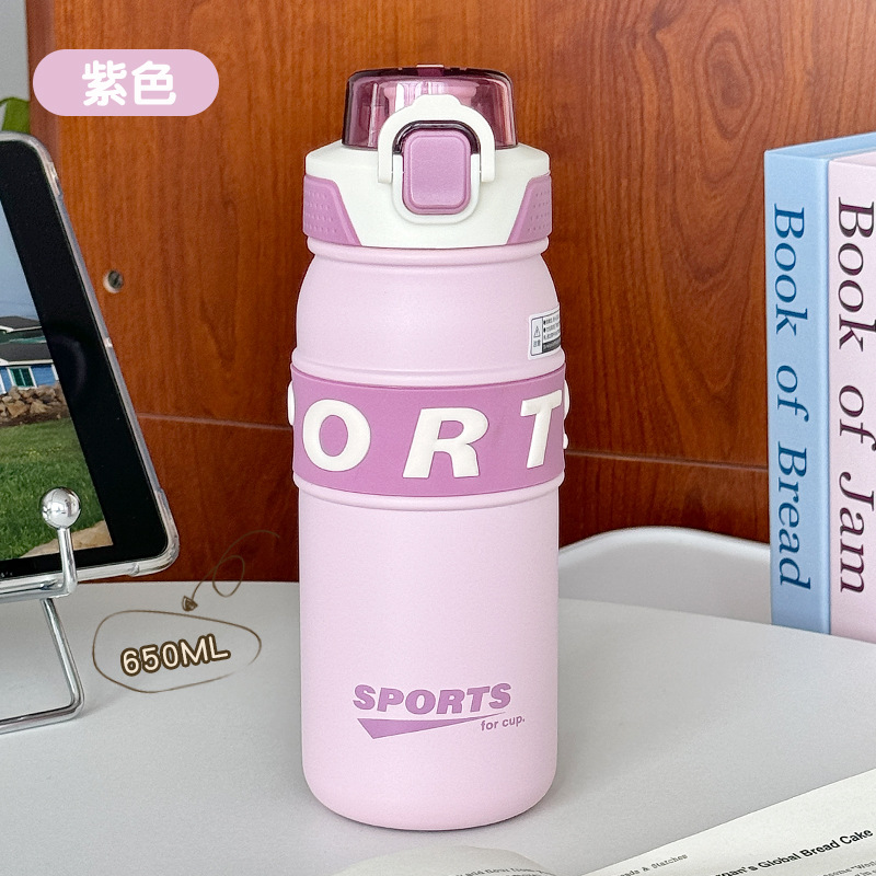 Student sports bouncing handle insulated cup, large-capacity outdoor portable straw insulated cup, high appearance level couple water cup