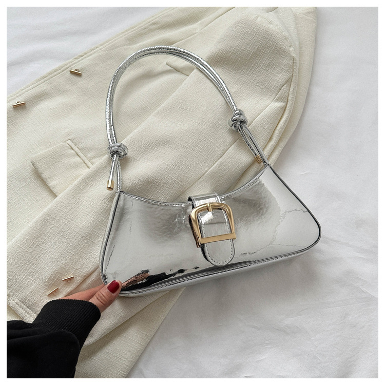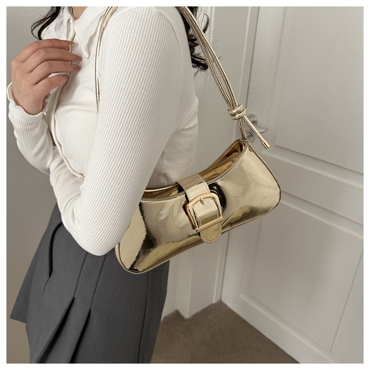 Stylish small women's bag 2023 new style simple solid color texture underarm single-shoulder bag fashionable and casual baguette trendy bag