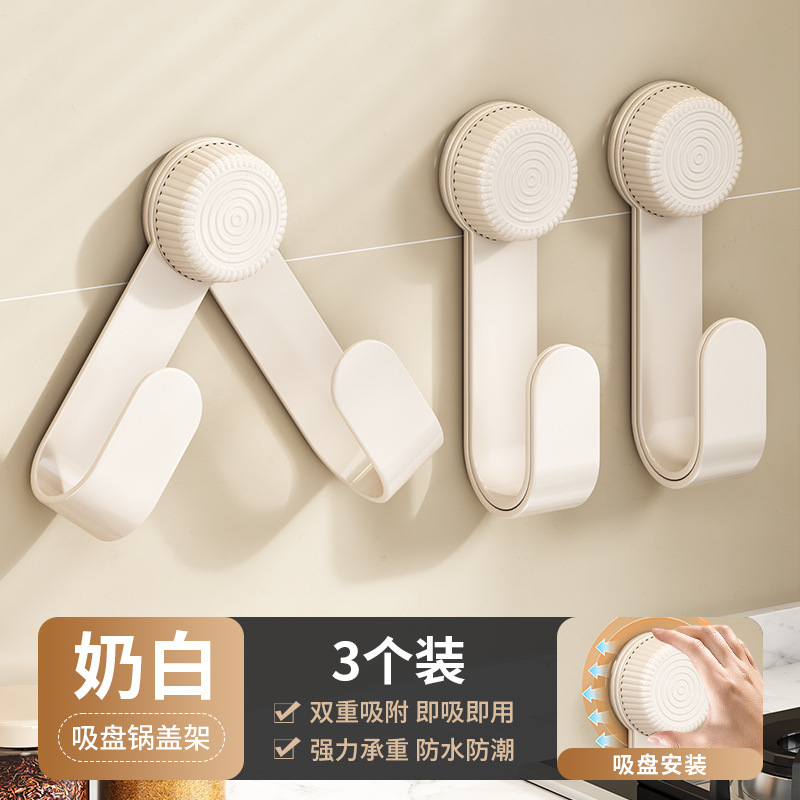 Suction cup pot lid rack, wall-mounted, non-drilling, multi-functional kitchen storage rack, cutting board placement device, kitchen organizing supplies