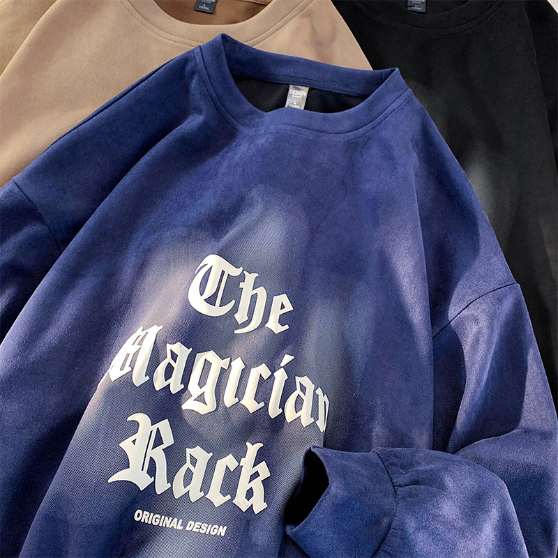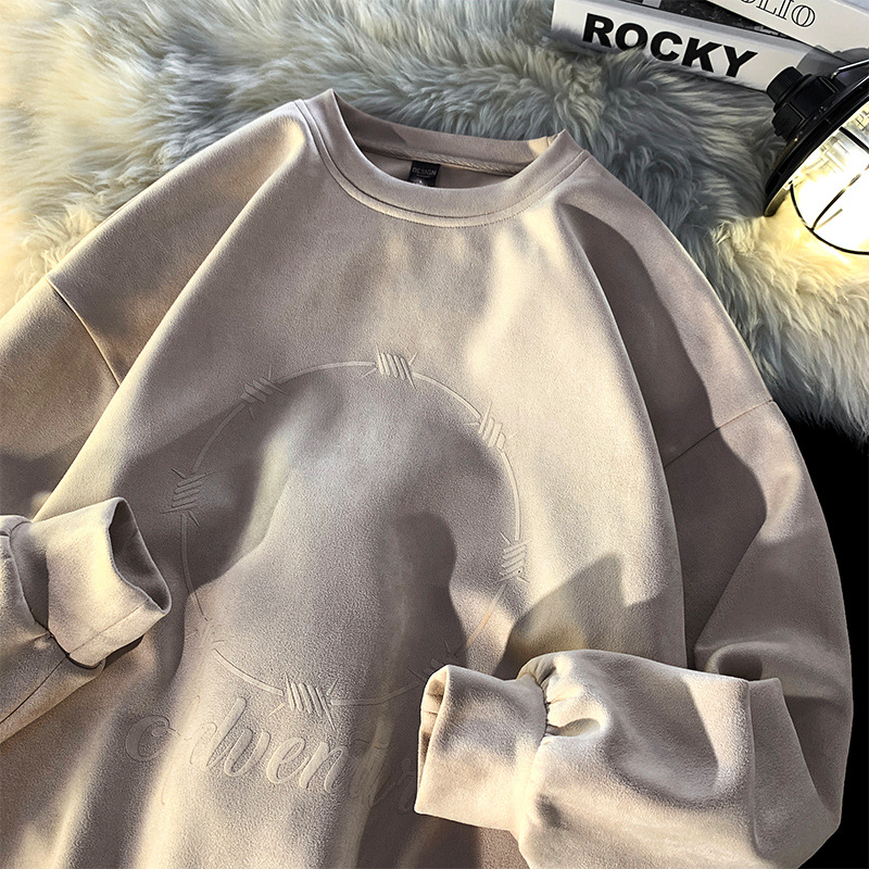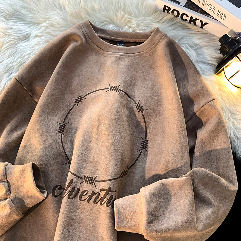 Suede round-neck hoodie men's spring men's jacket 2023 new Spring and Autumn collection from a trendy brand is now available for men
