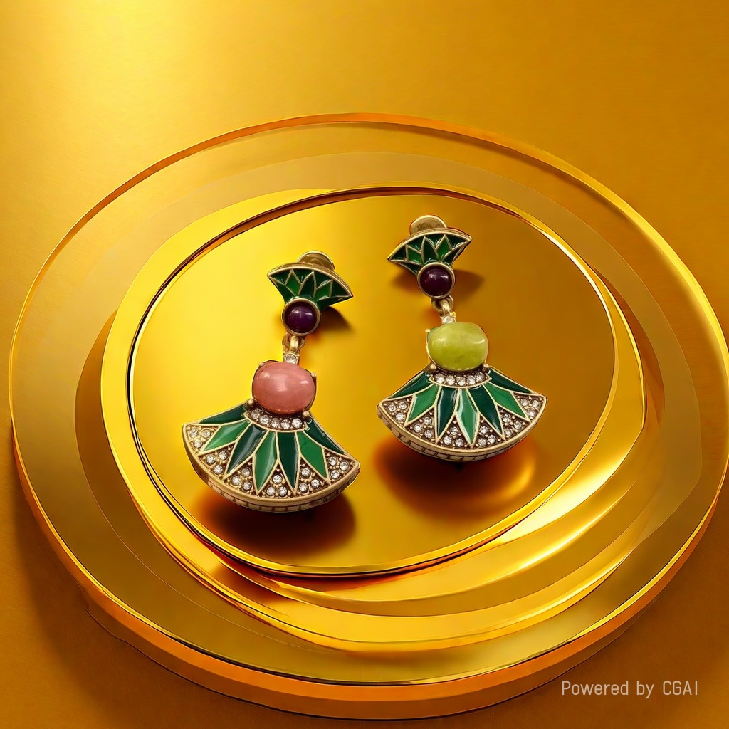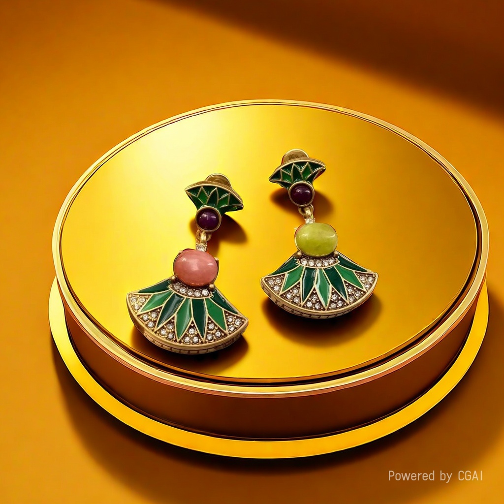 【SUGEBEINI】 Retro fan-shaped contrasting enamel earrings, women's fan-shaped colored gemstone earrings ZEH00065