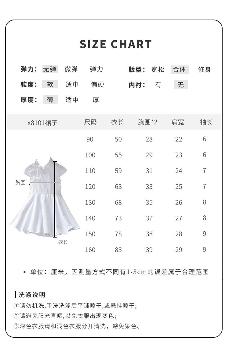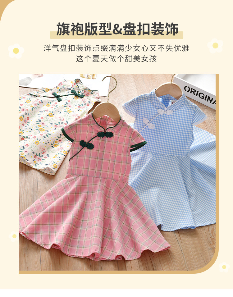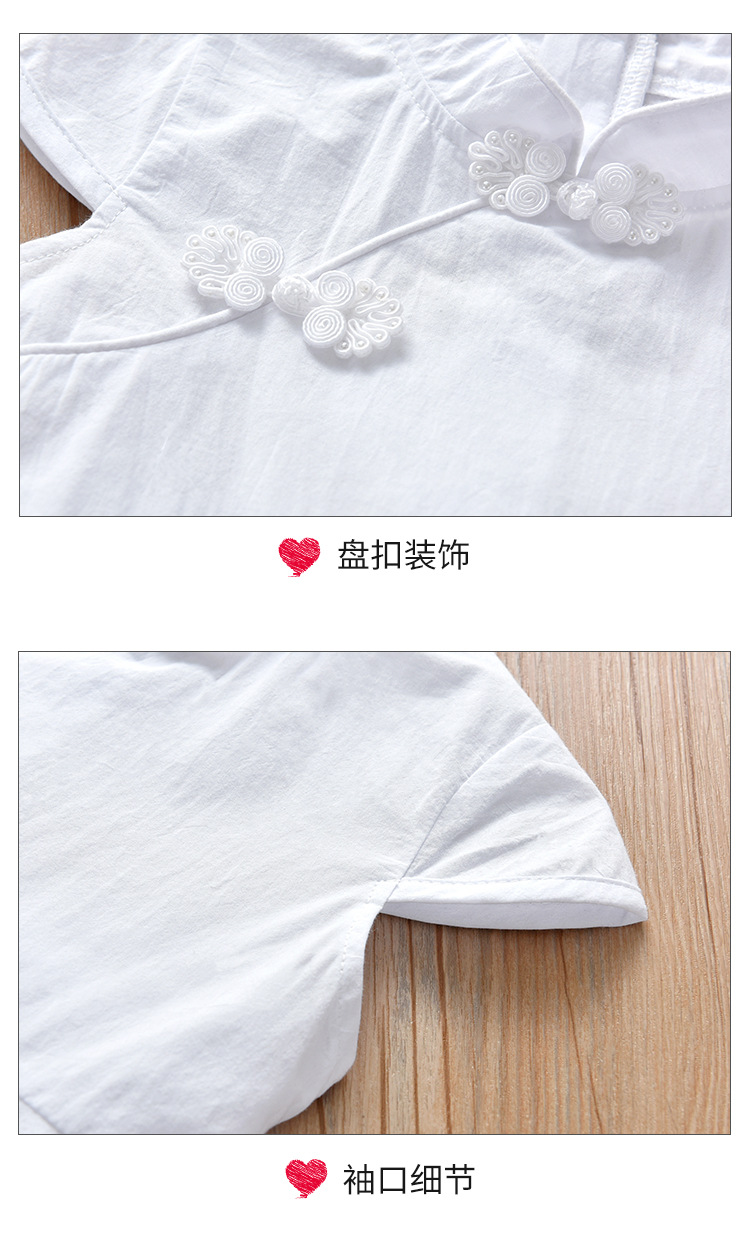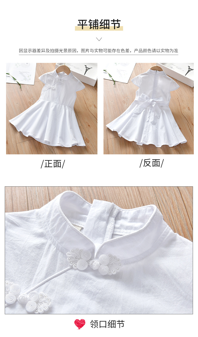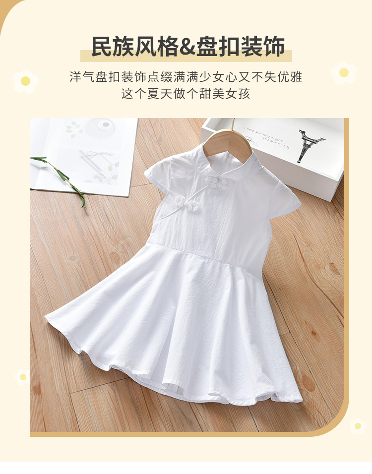 Summer 2021 new style Chinese style button-up short-sleeved ancient-style white dress for girls, stylish children's dress with a large swing