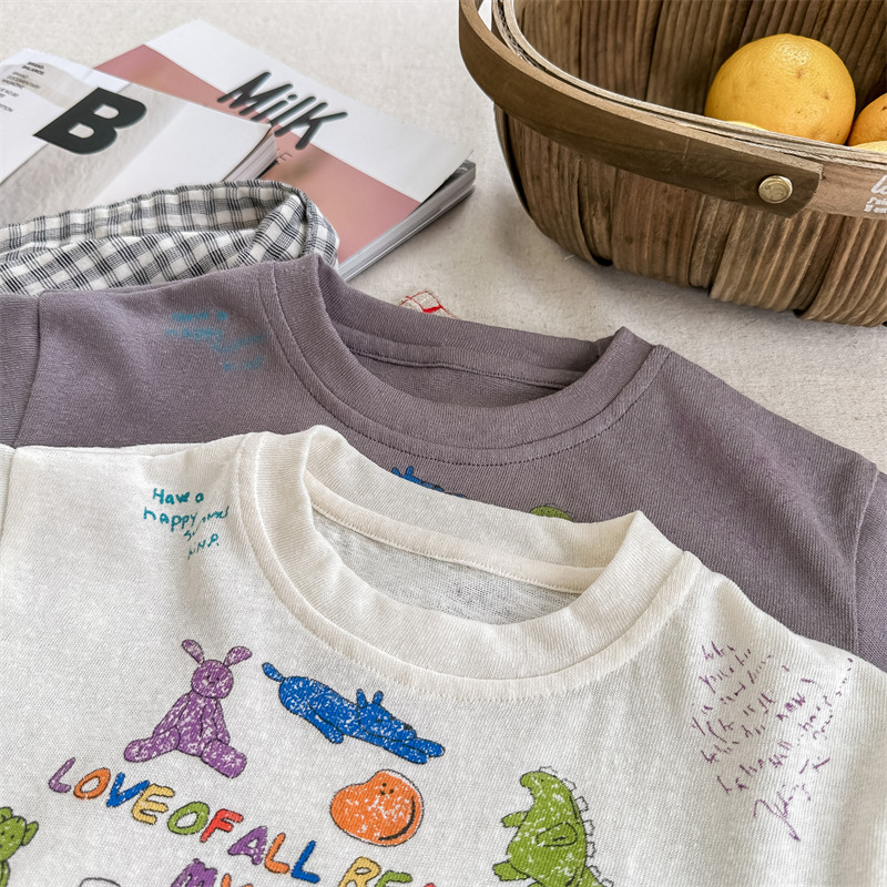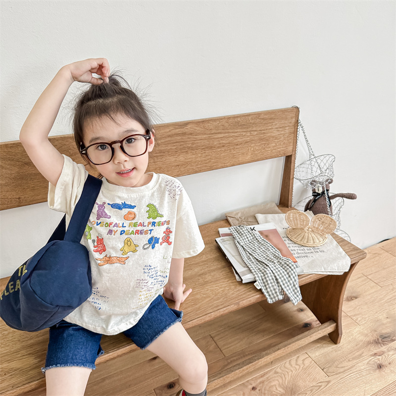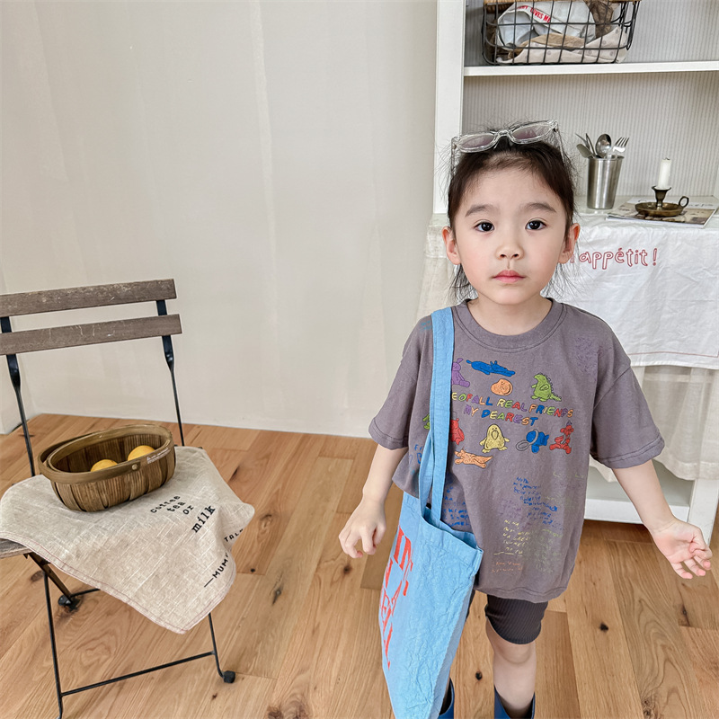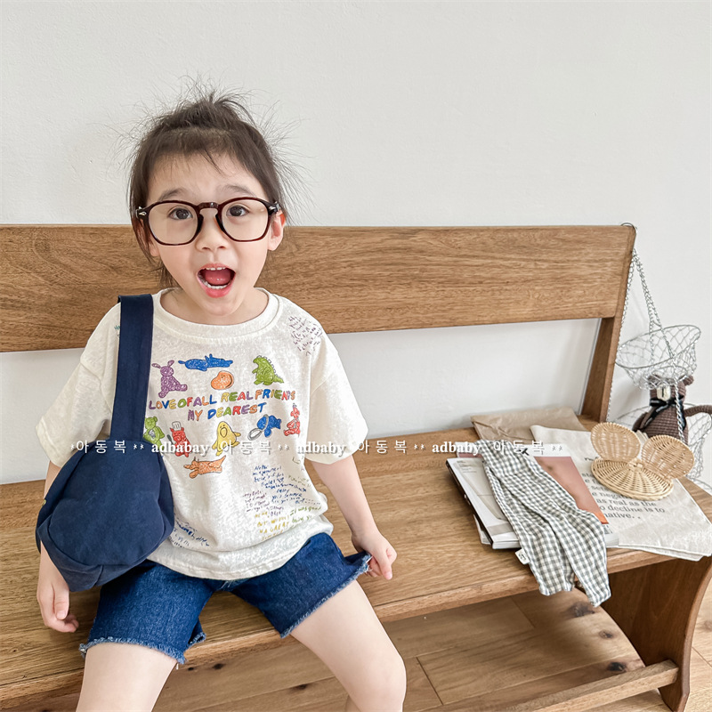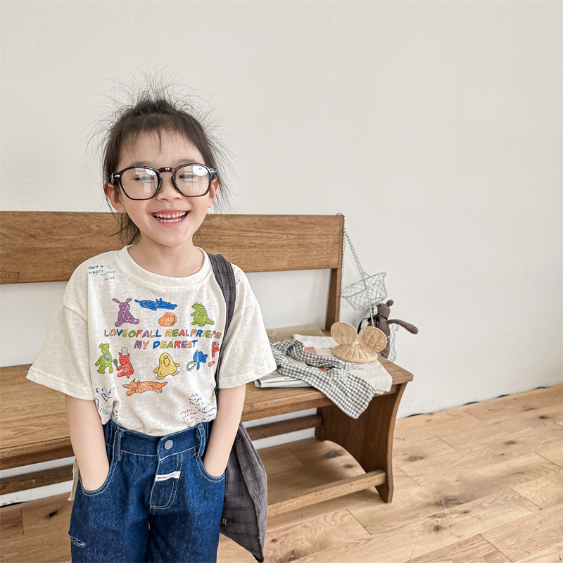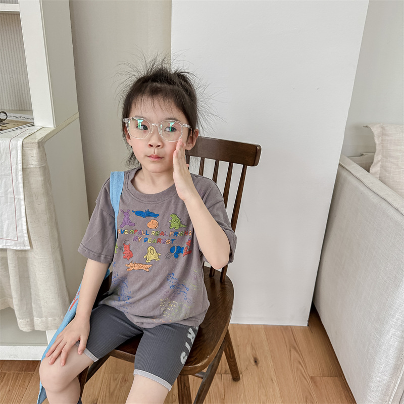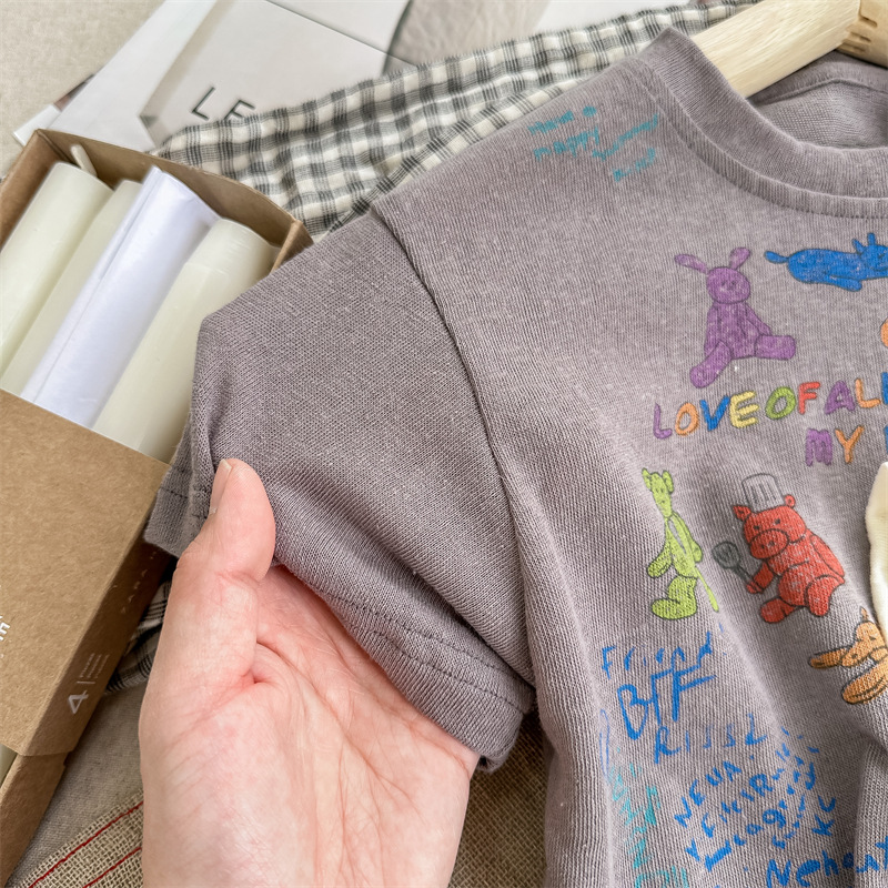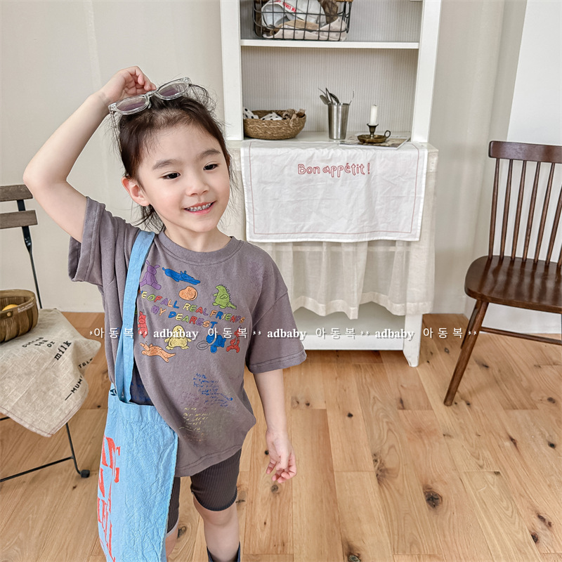 Summer 2025 Children's Clothing: Korean version active printed Girls' short-sleeved T-shirt, Summer Clothing for Boys' base Layer, 123292