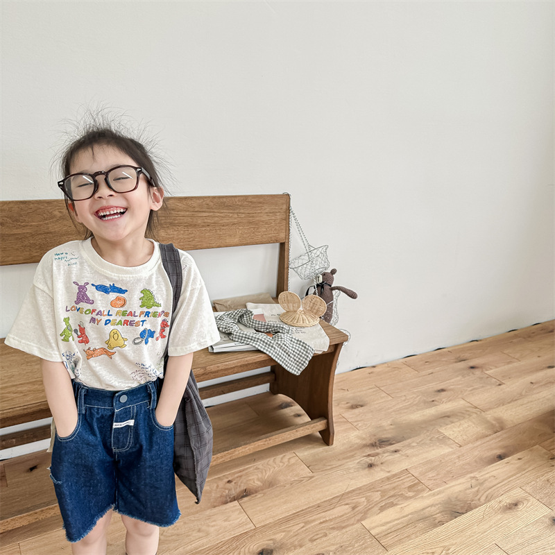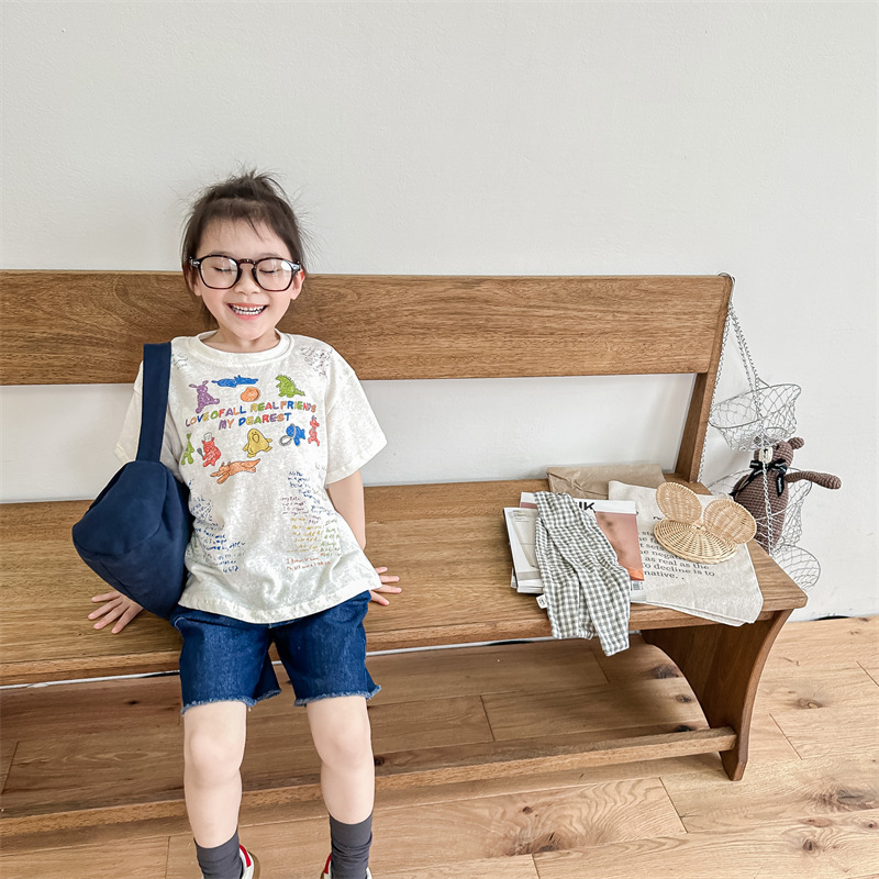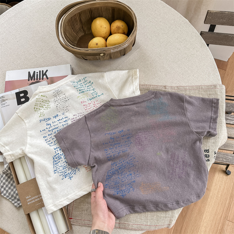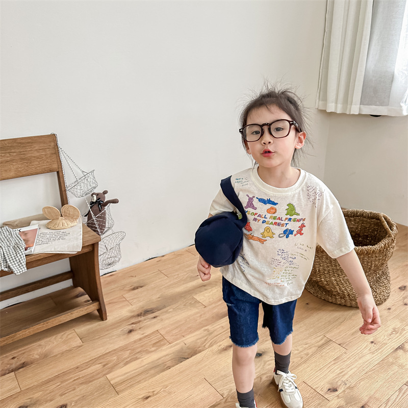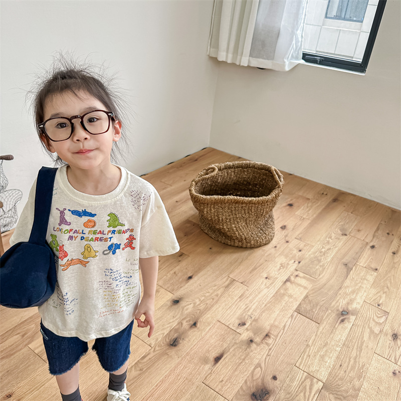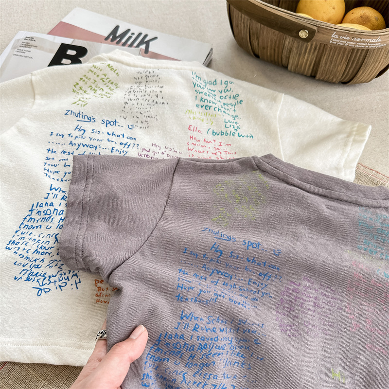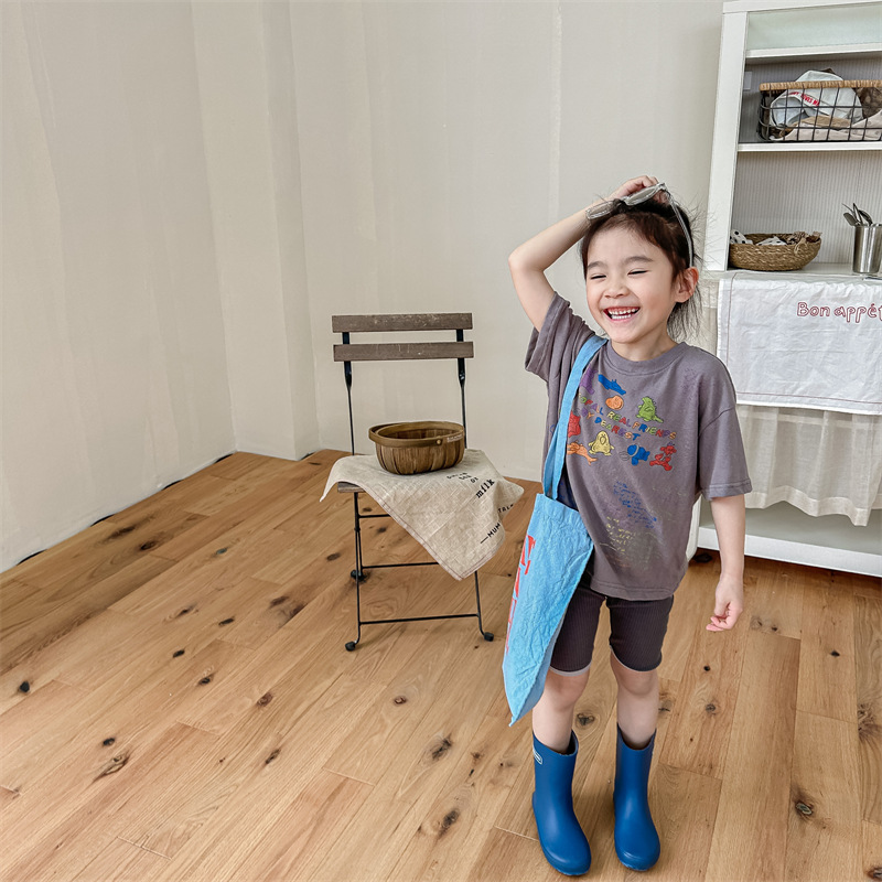Summer 2025 Children's Clothing: Korean version active printed Girls' short-sleeved T-shirt, Summer Clothing for Boys' base Layer, 123292