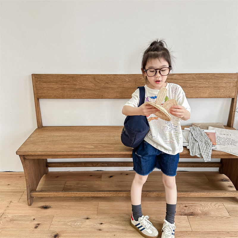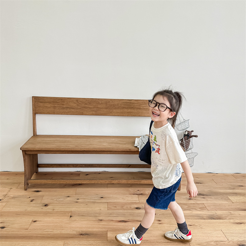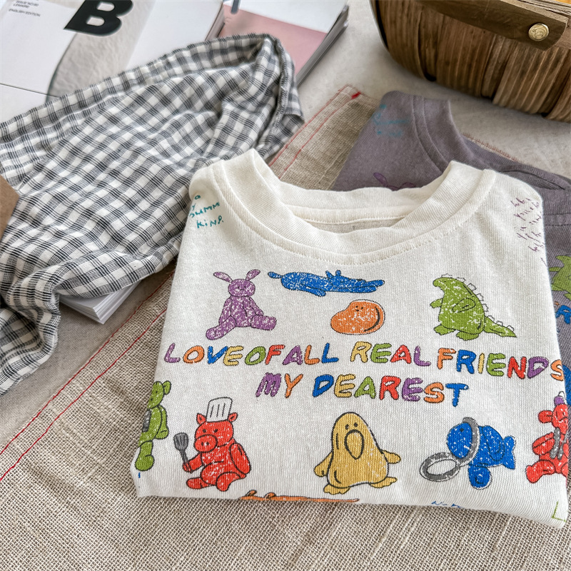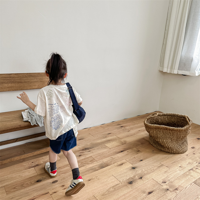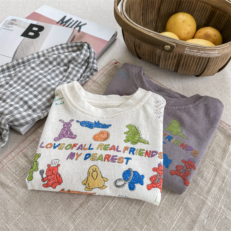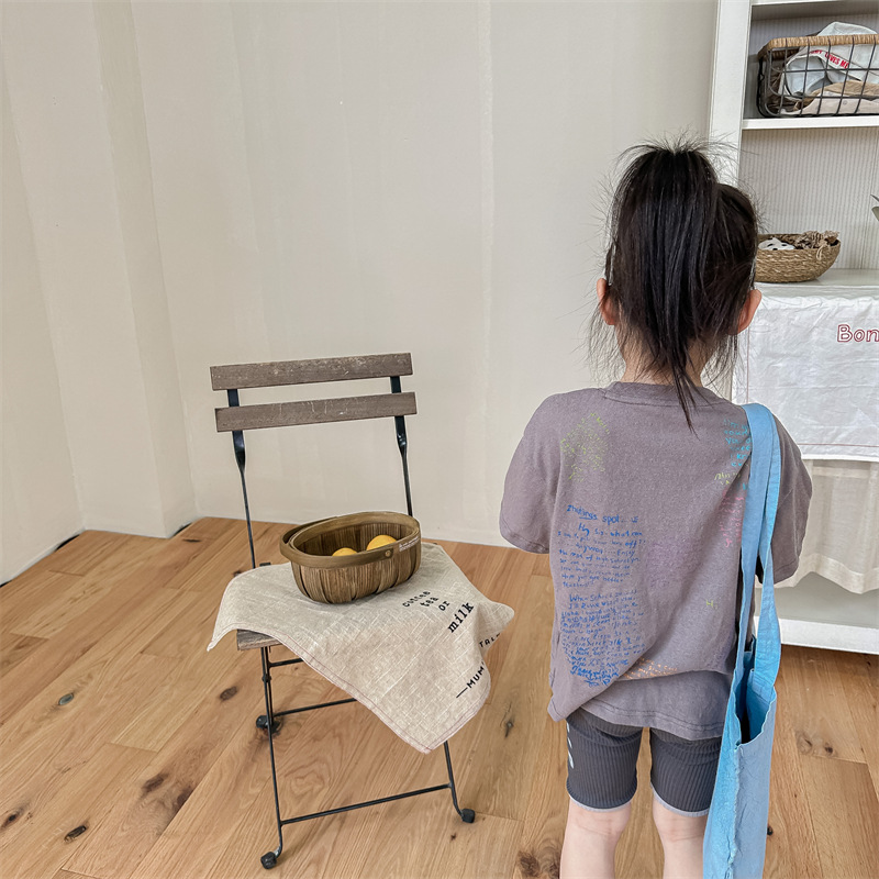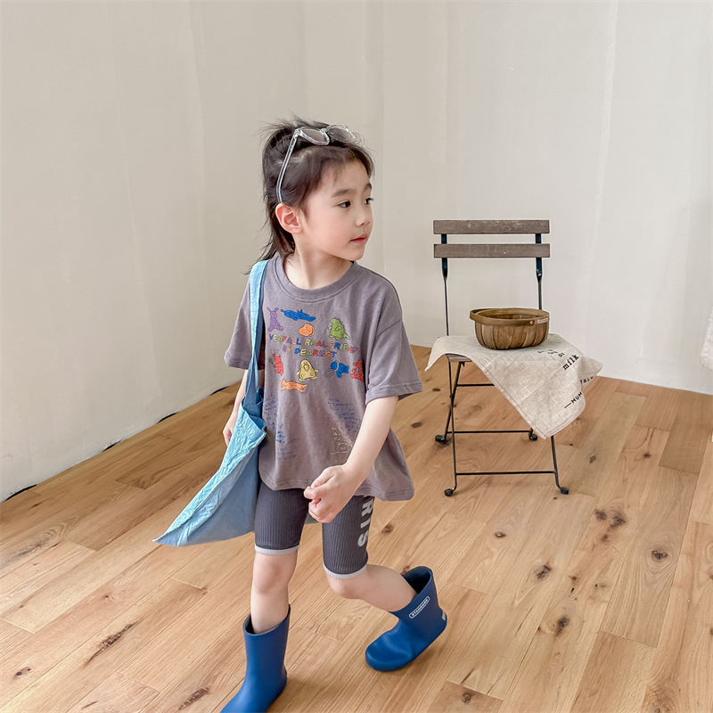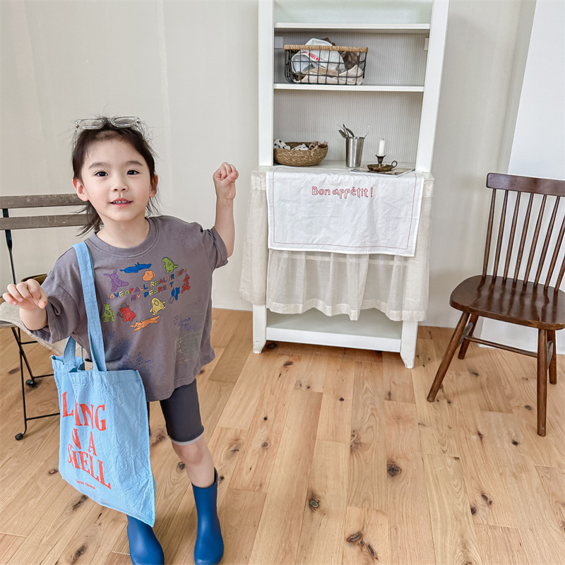 Summer 2025 Children's Clothing: Korean version active printed Girls' short-sleeved T-shirt, Summer Clothing for Boys' base Layer, 123292