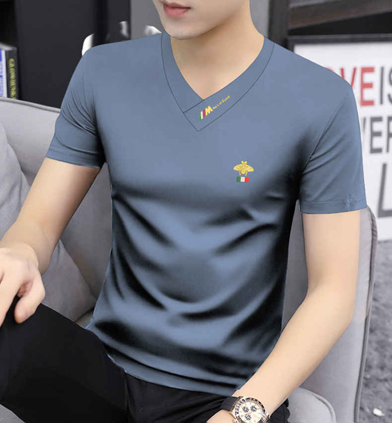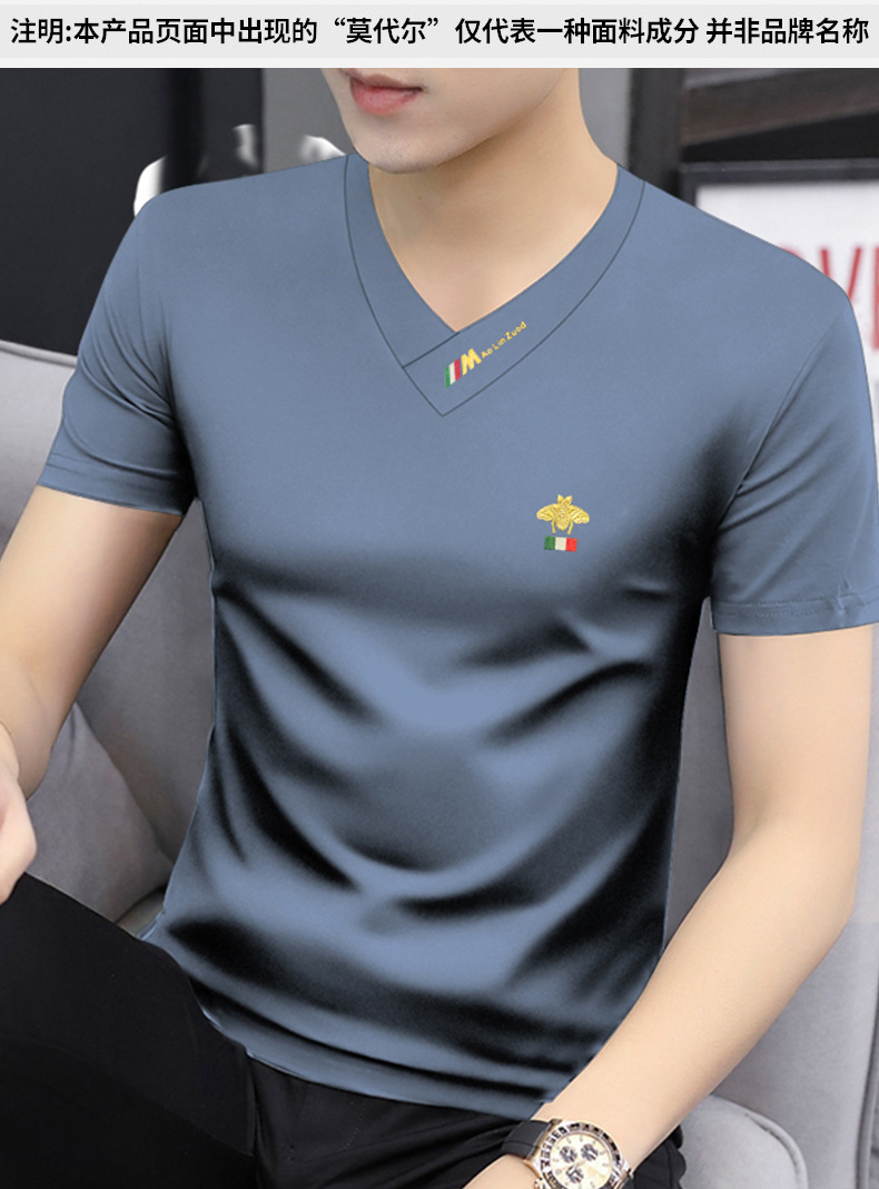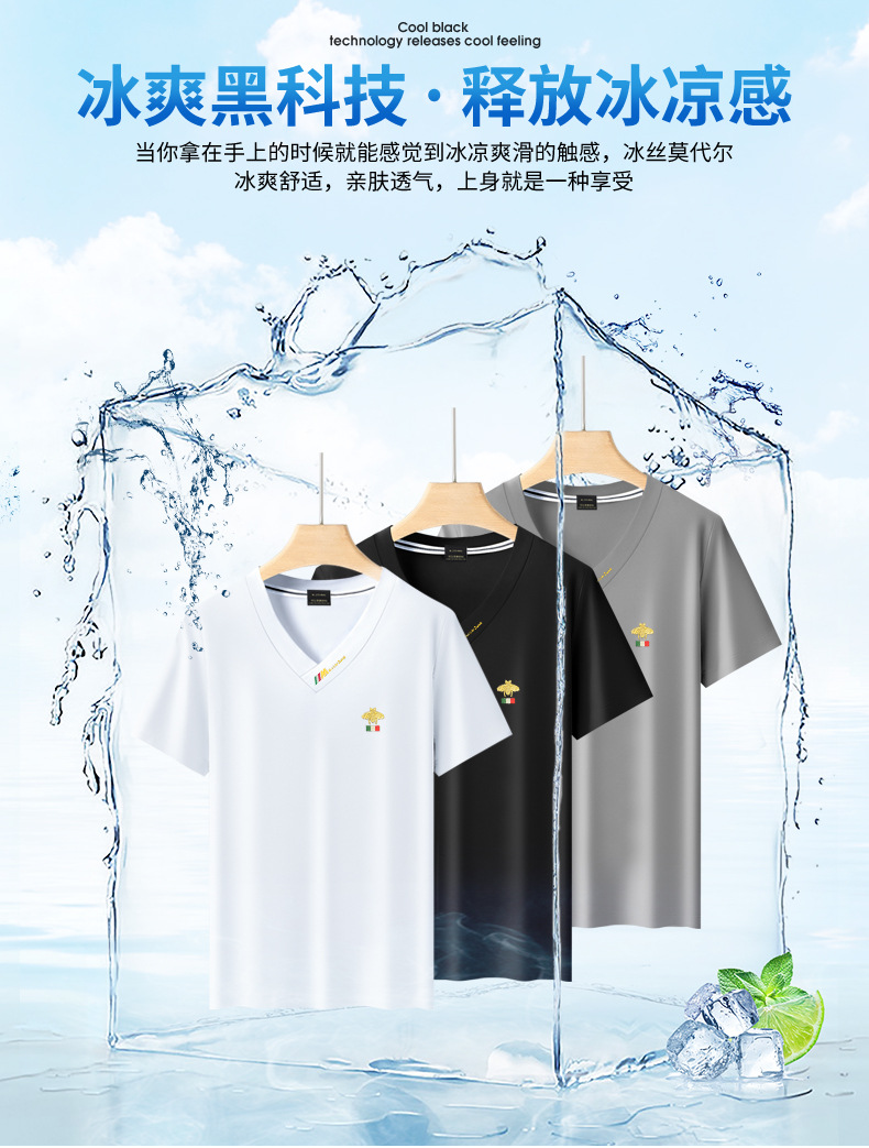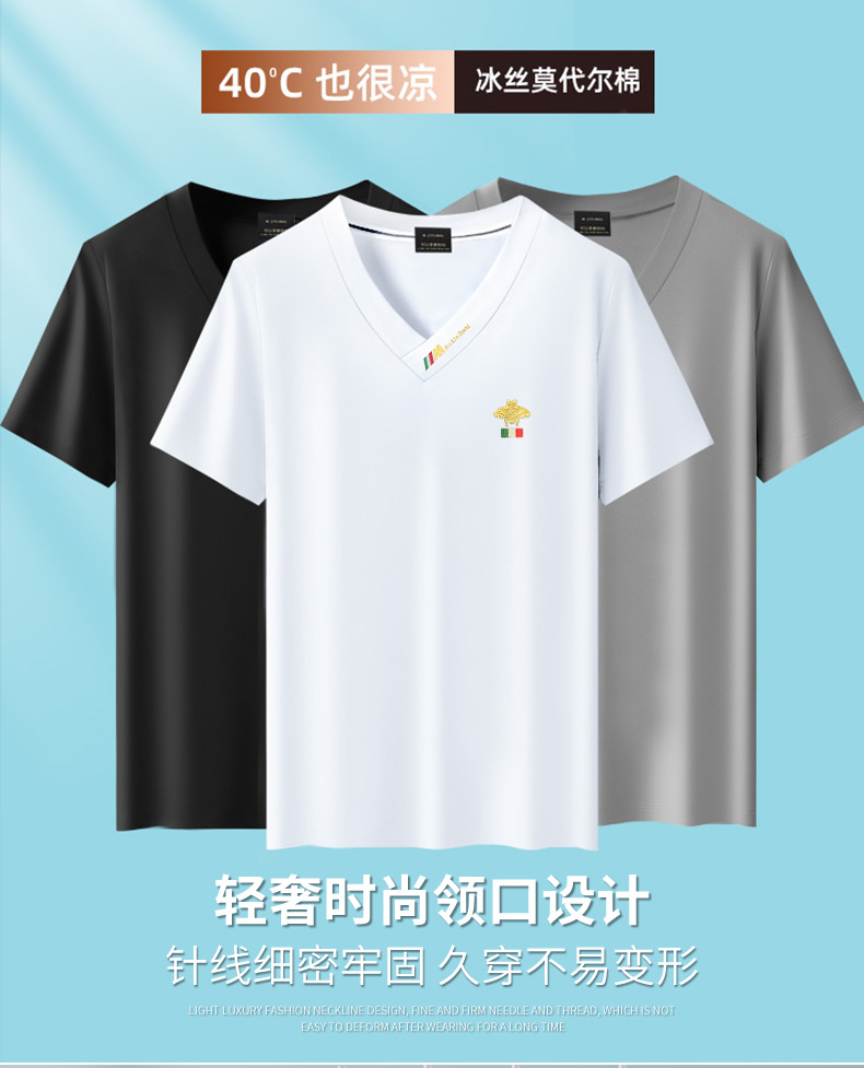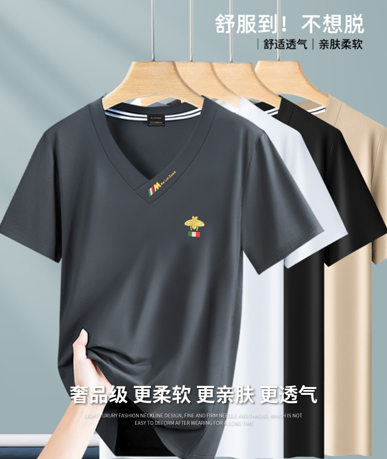Summer 2025 new men's short-sleeved T-shirt V-neck top quick-drying high-end cool T-shirt Modal men's clothing wholesale