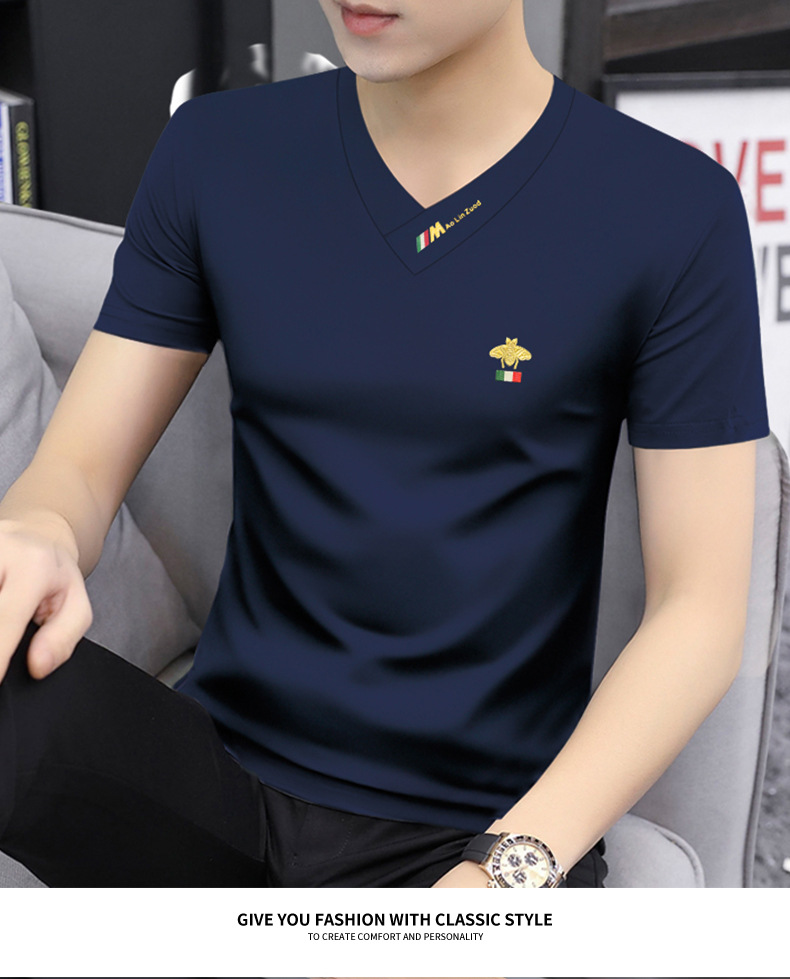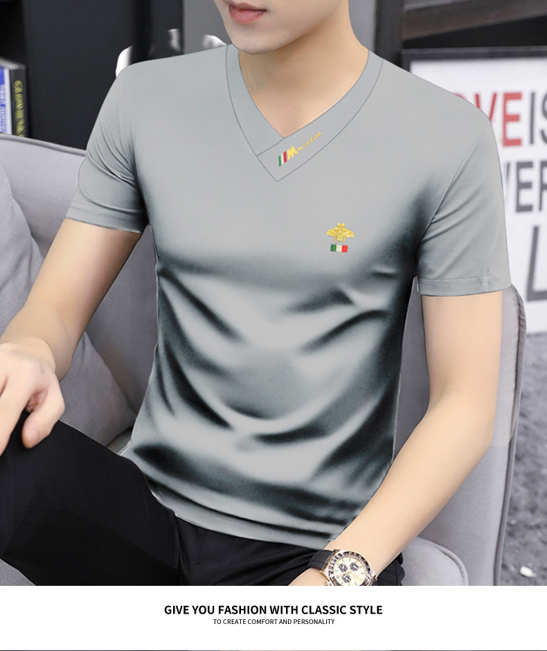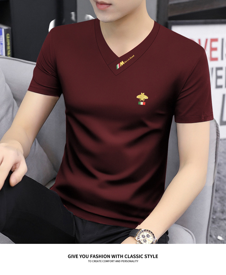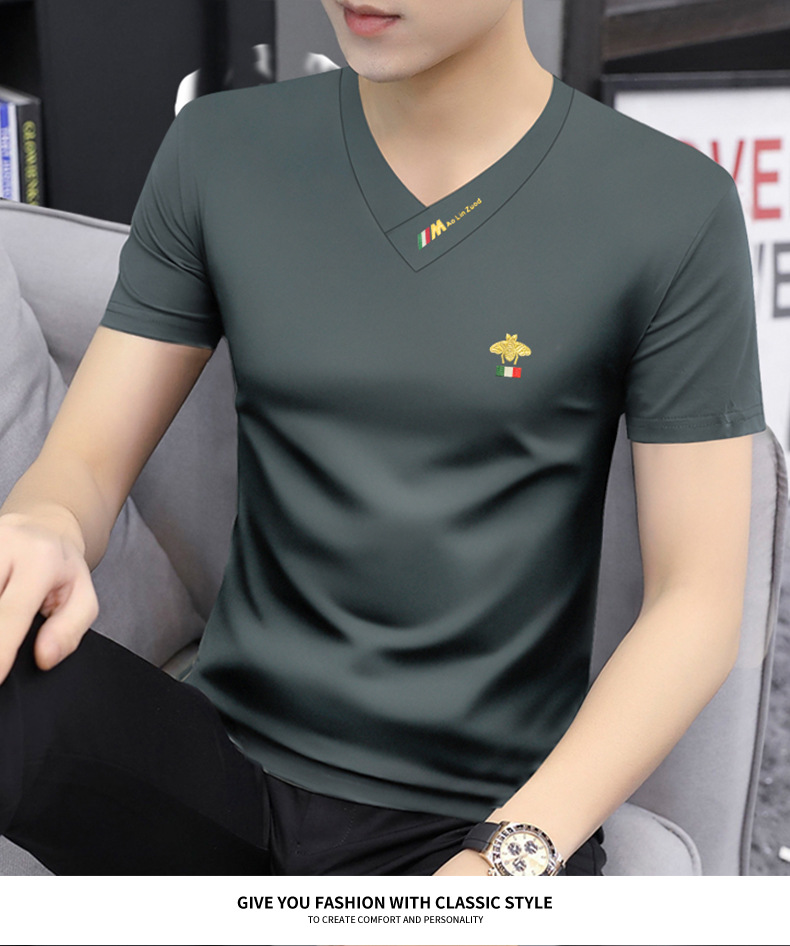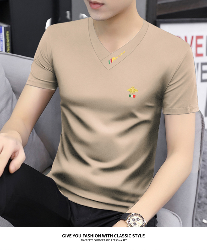 Summer 2025 new men's short-sleeved T-shirt V-neck top quick-drying high-end cool T-shirt Modal men's clothing wholesale