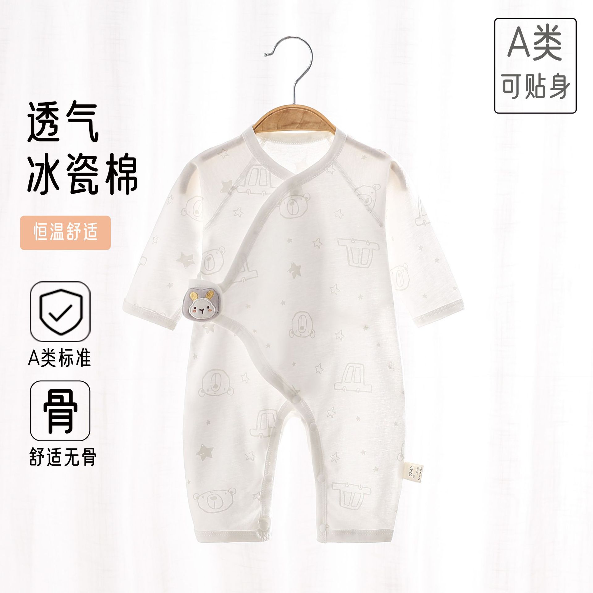 Summer baby one-piece suit, pure cotton thin boneless clothes for infants, long-sleeved clothes for babies, summer air-conditioned clothes