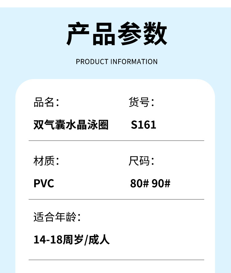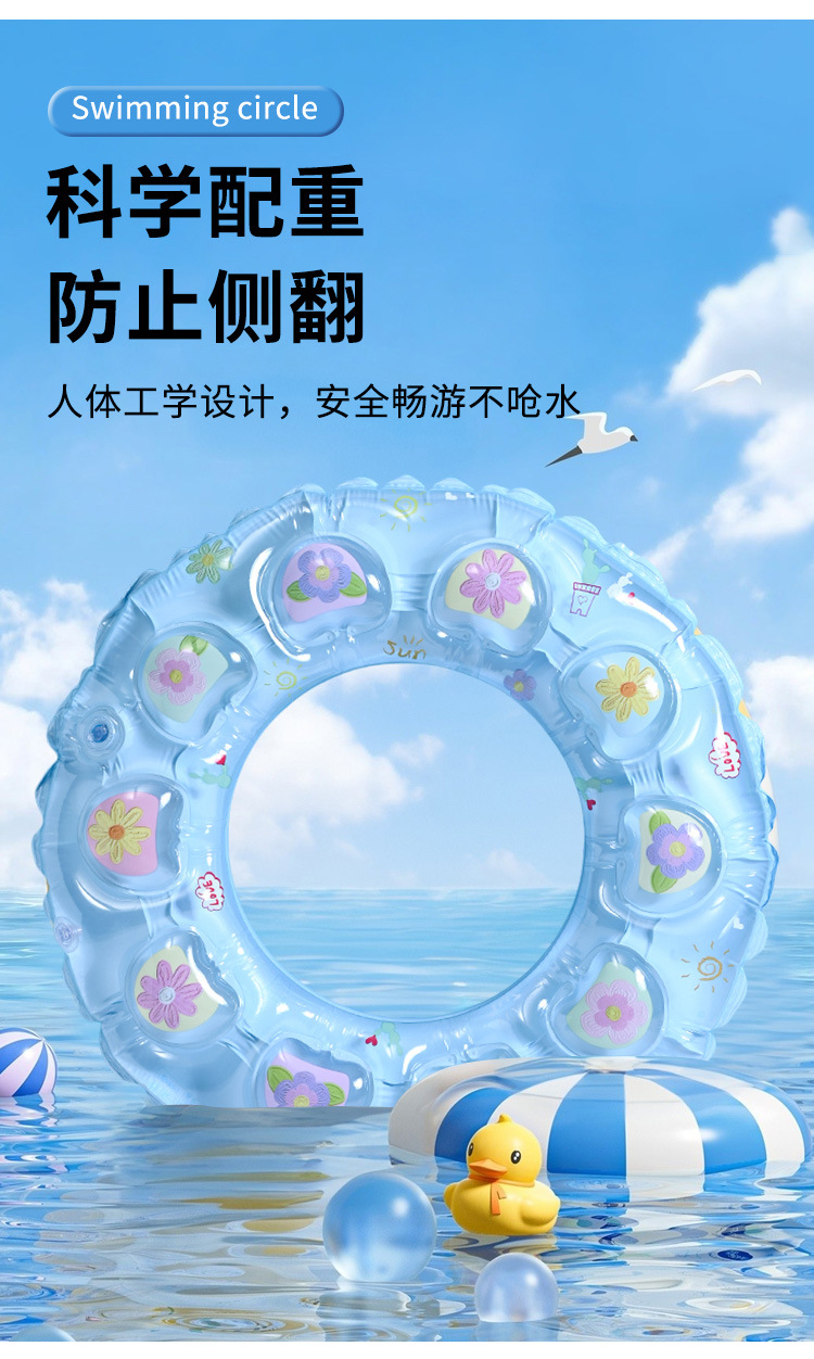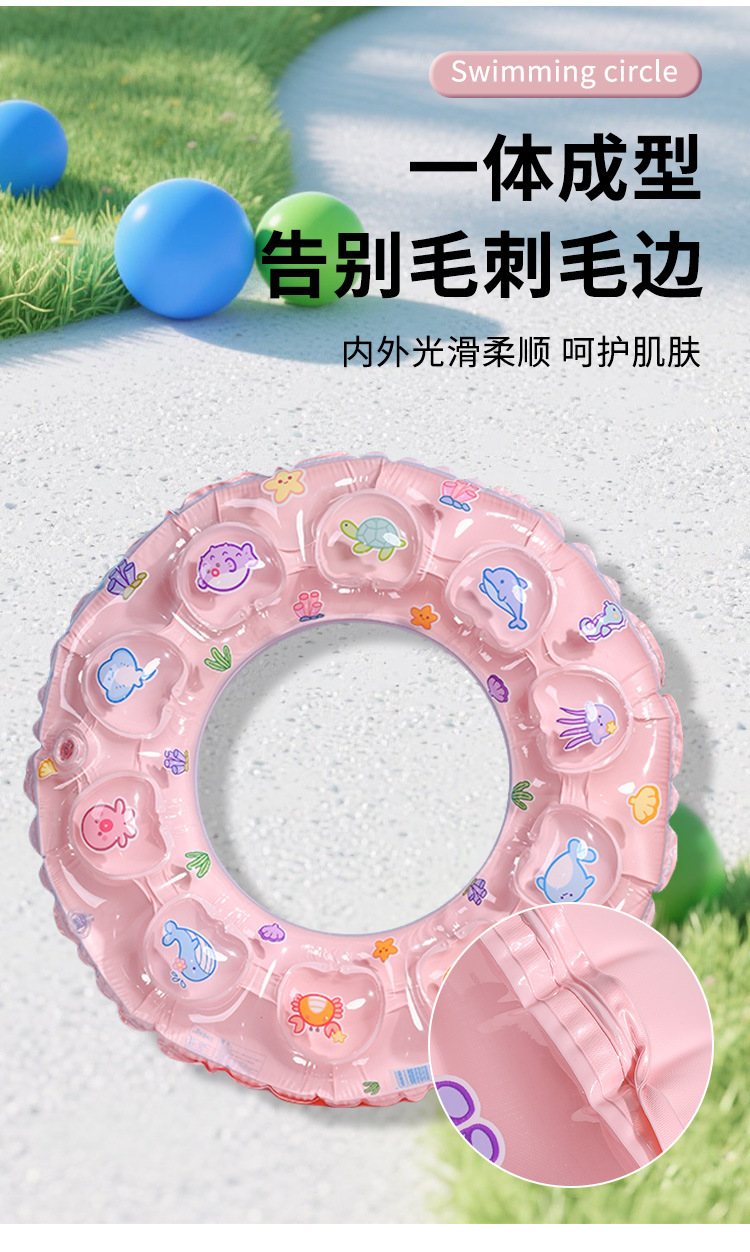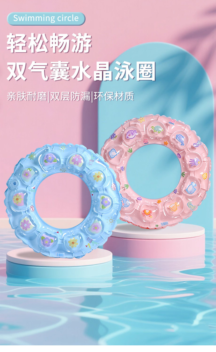 Summer cartoon children's thickened double-layer double-air crystal ring, adult inflatable underarm float ring, beginner swimming ring