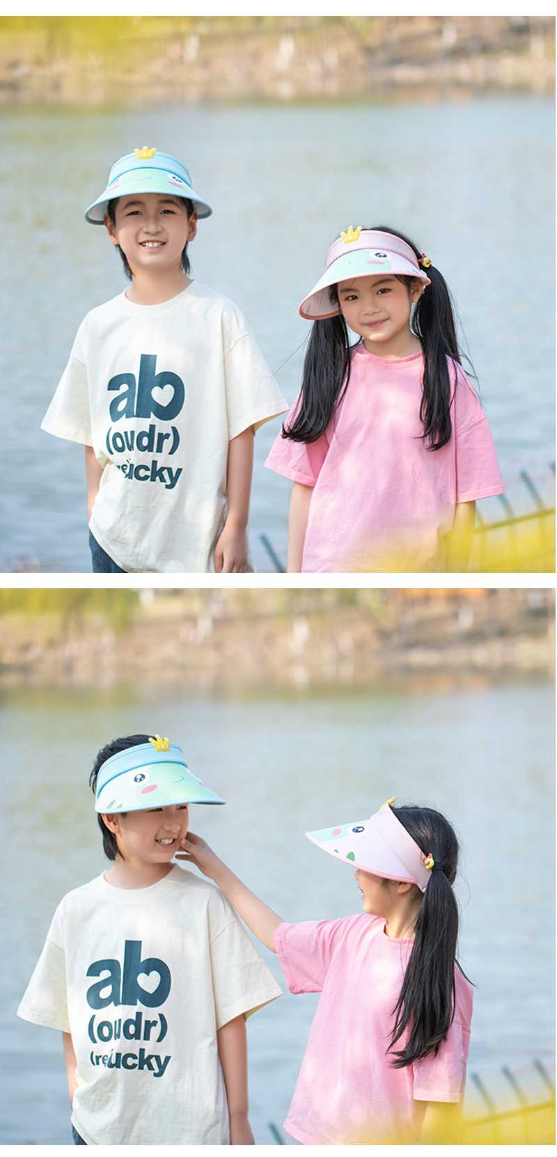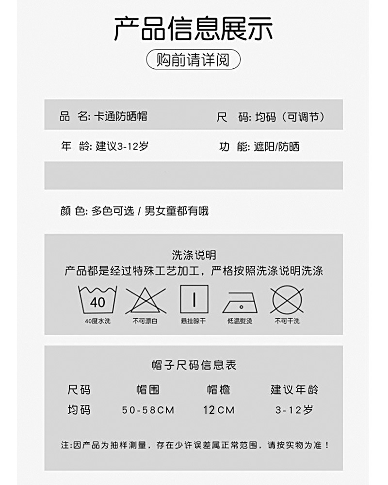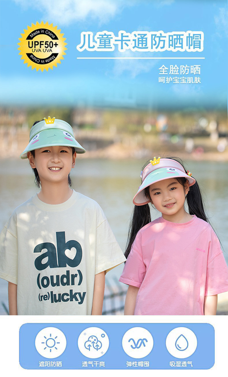 Summer children's open-top hats for outdoor sun protection, fashionable cartoon sun protection hats with cute patterns, full face sun protection, in stock and available for shipment