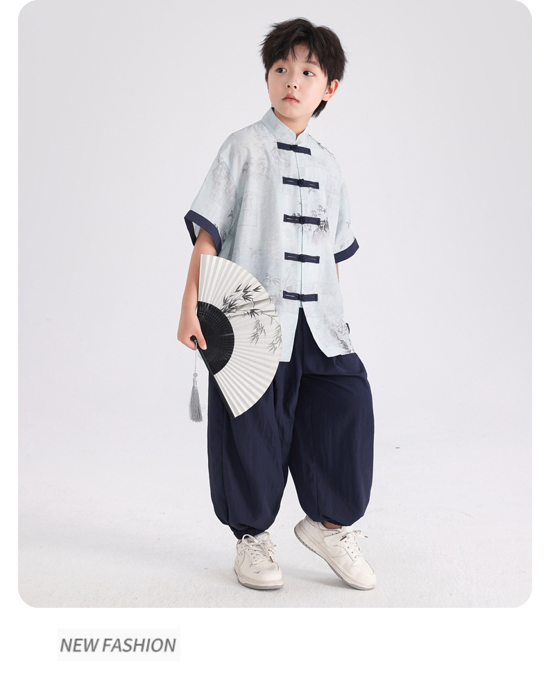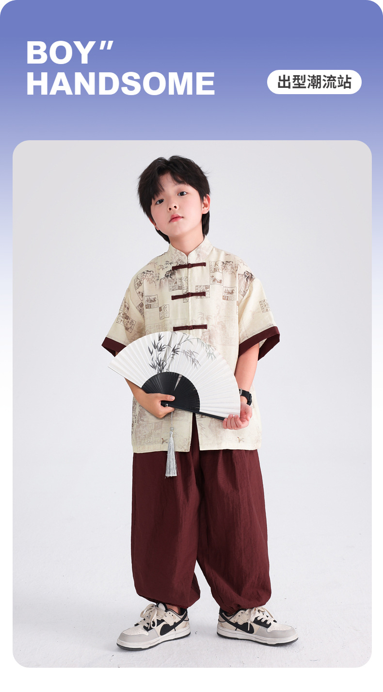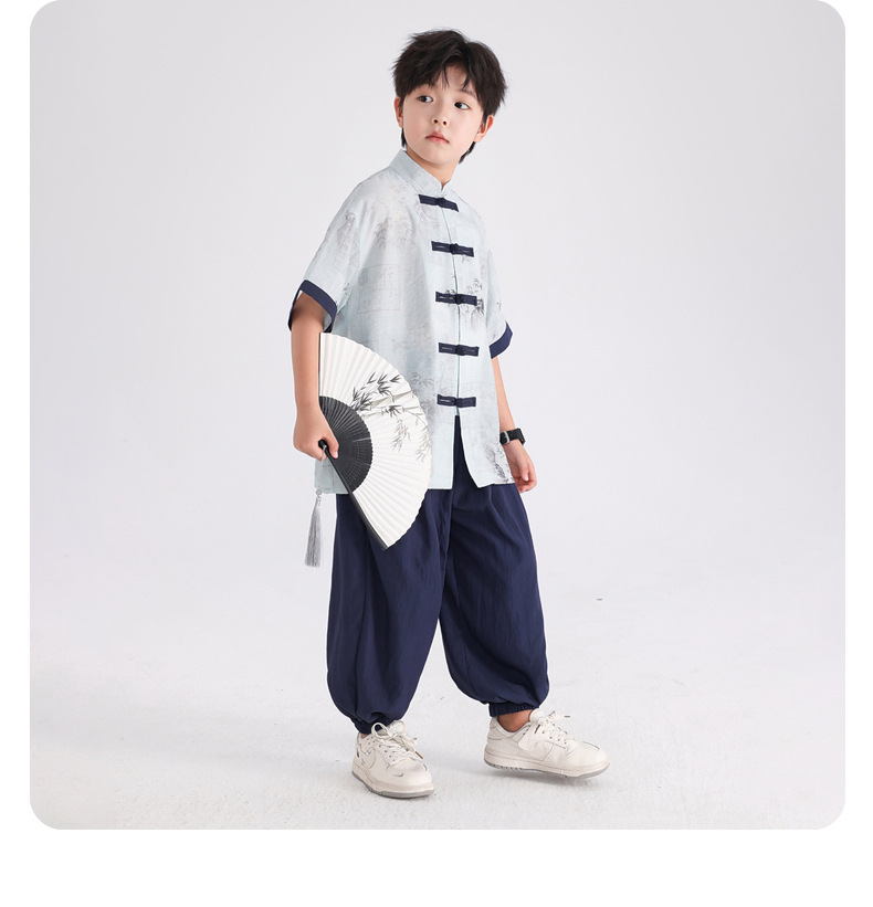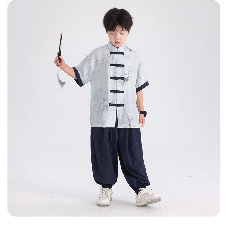 Summer Chinese-style daily short-sleeved Hanfu set for boys, 2025 new style for children's new Chinese-style performance costumes, Tang suits
